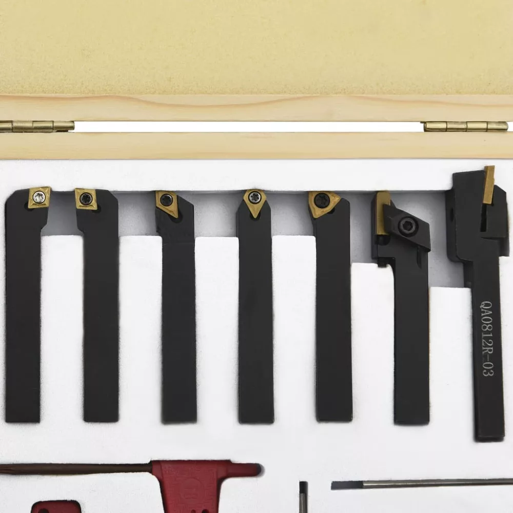 - 7 váltólapos esztergaszerszámot tartalmaz