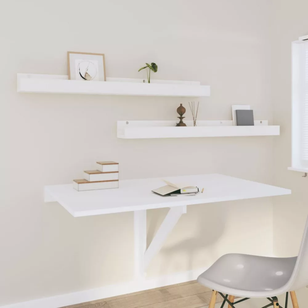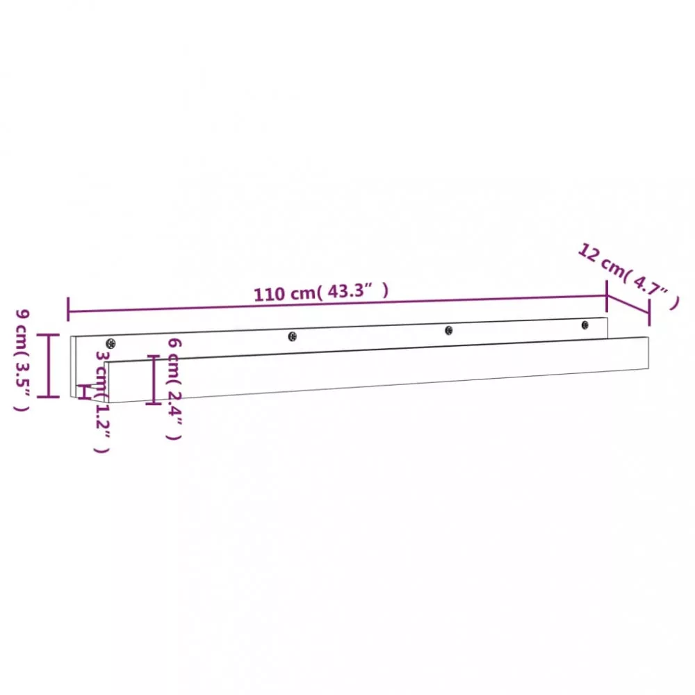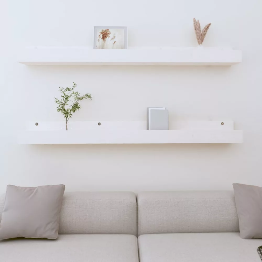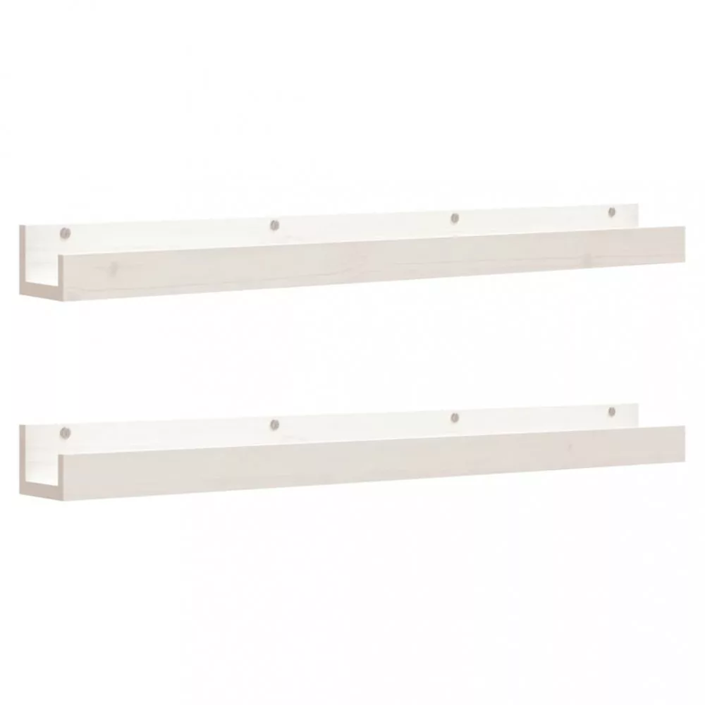 2 db fehér tömör fenyőfa fali polc 110 x 12 x 9 cm