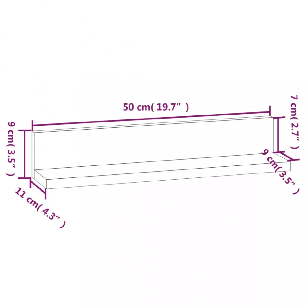 2 db tömör fenyőfa falipolc 50 x 11 x 9 cm