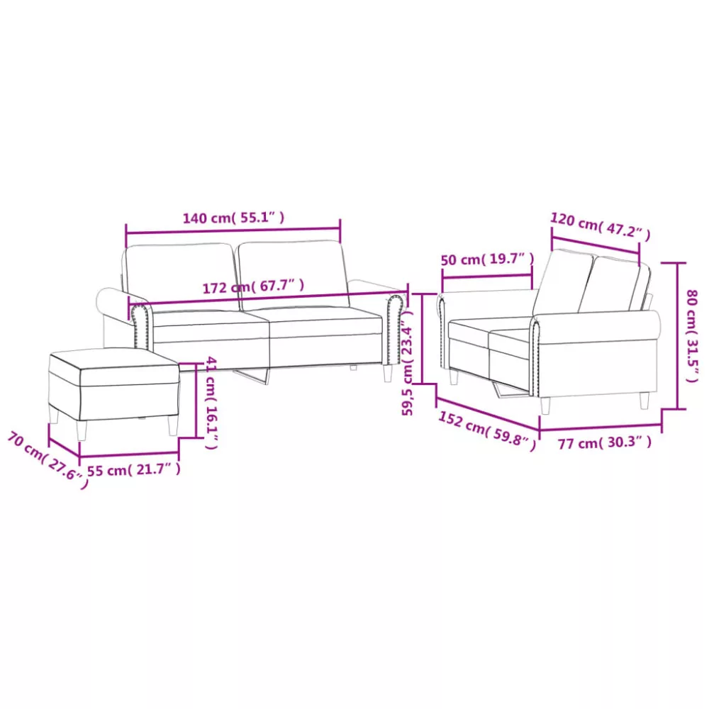 - Kétszemélyes kanapé (140 cm):