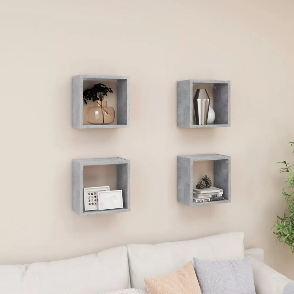 4 db betonszürke fali kockapolc 26 x 15 x 26 cm