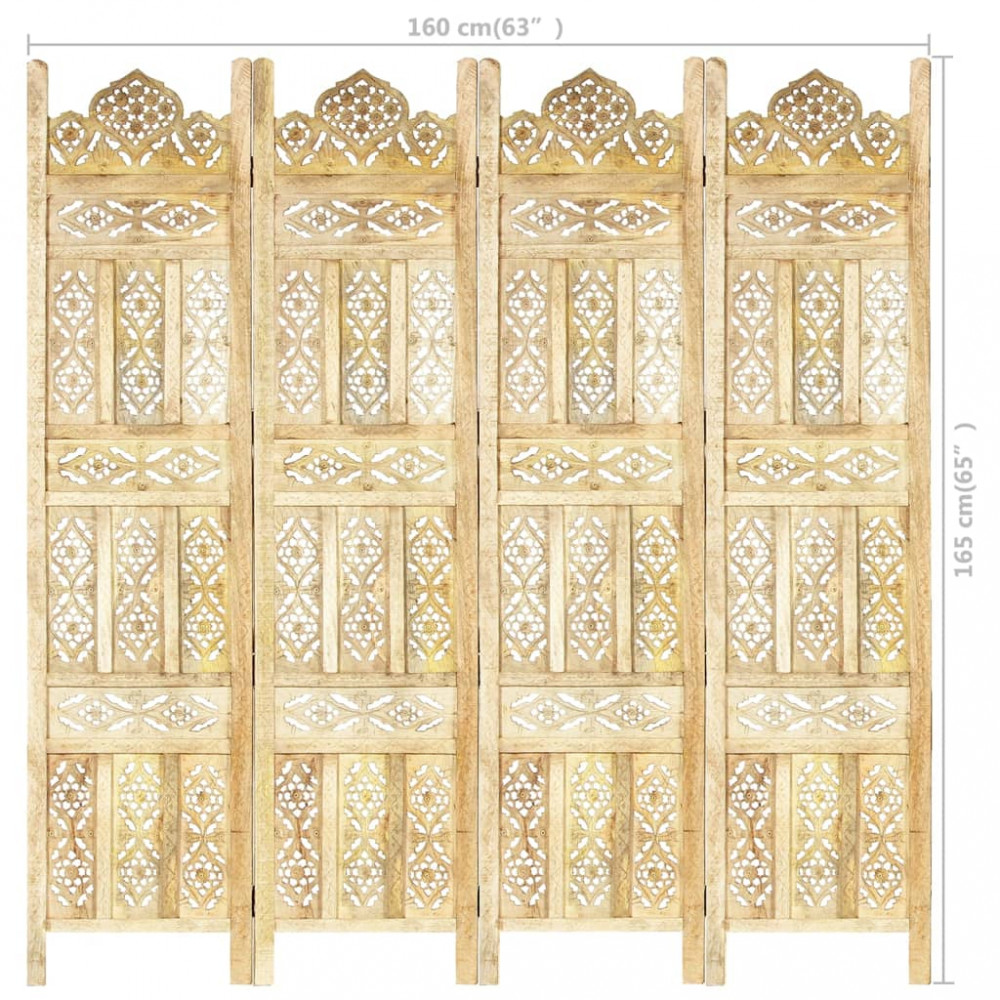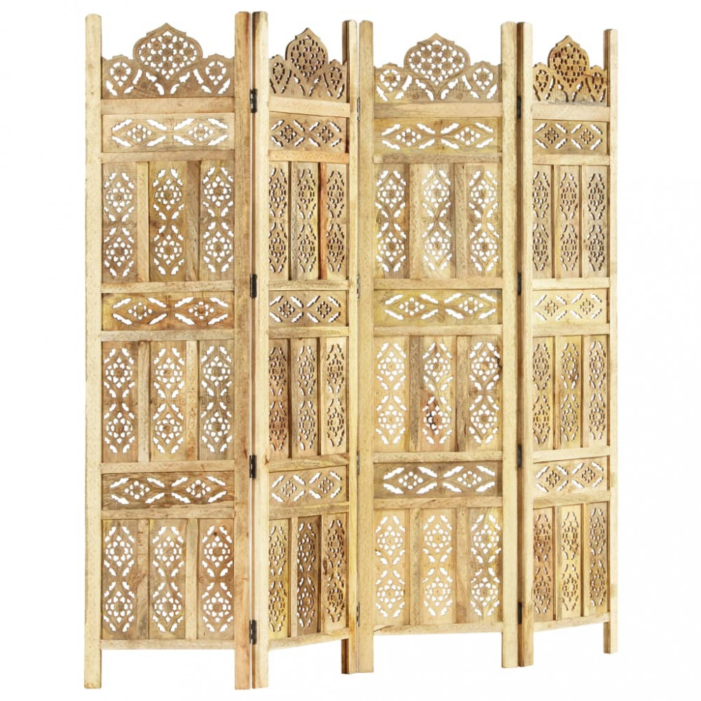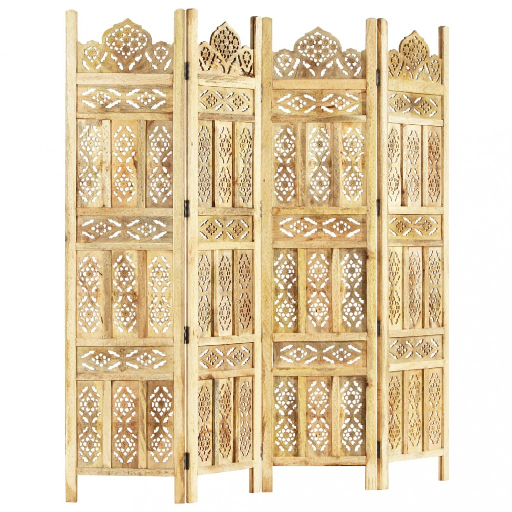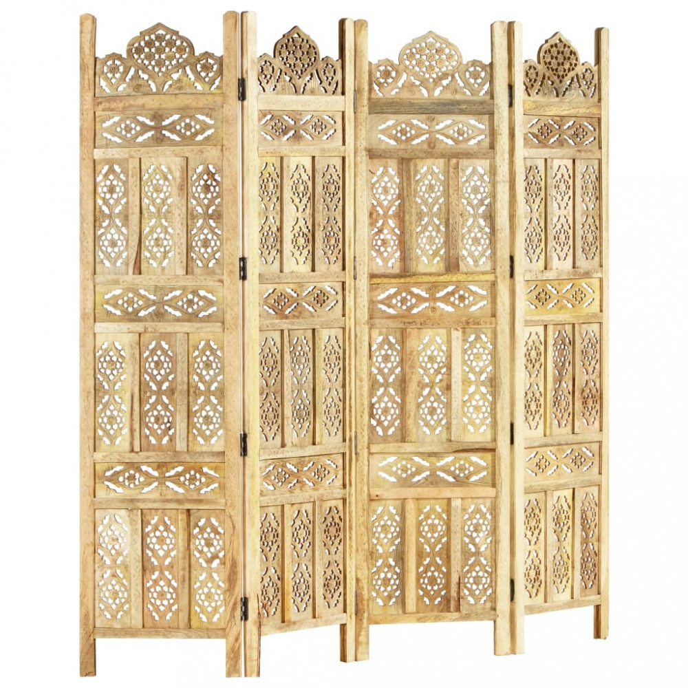 Vigyen egy kis klasszikus stílust otthona enteriőrjébe elegáns, kézzel faragott szobaválasztónkkal! Ideális lesz a hálószobába, hogy különálló öltözőt hozzon létre vagy leválassza a szoba egy részét. Ezenkívül tömör mangófából készült kézzel, gyönyörű mintákkal díszítve, ami növeli a paraván klasszikus szépségéhez. Könnyen összecsukható, hogy helyet takaríthasson meg, ha éppen nem használja. Az összecsukható paraván könnyen összeszerelhető. Megjegyzés: A termékek kézzel készültek, így színben és mintában eltérőek lehetnek.