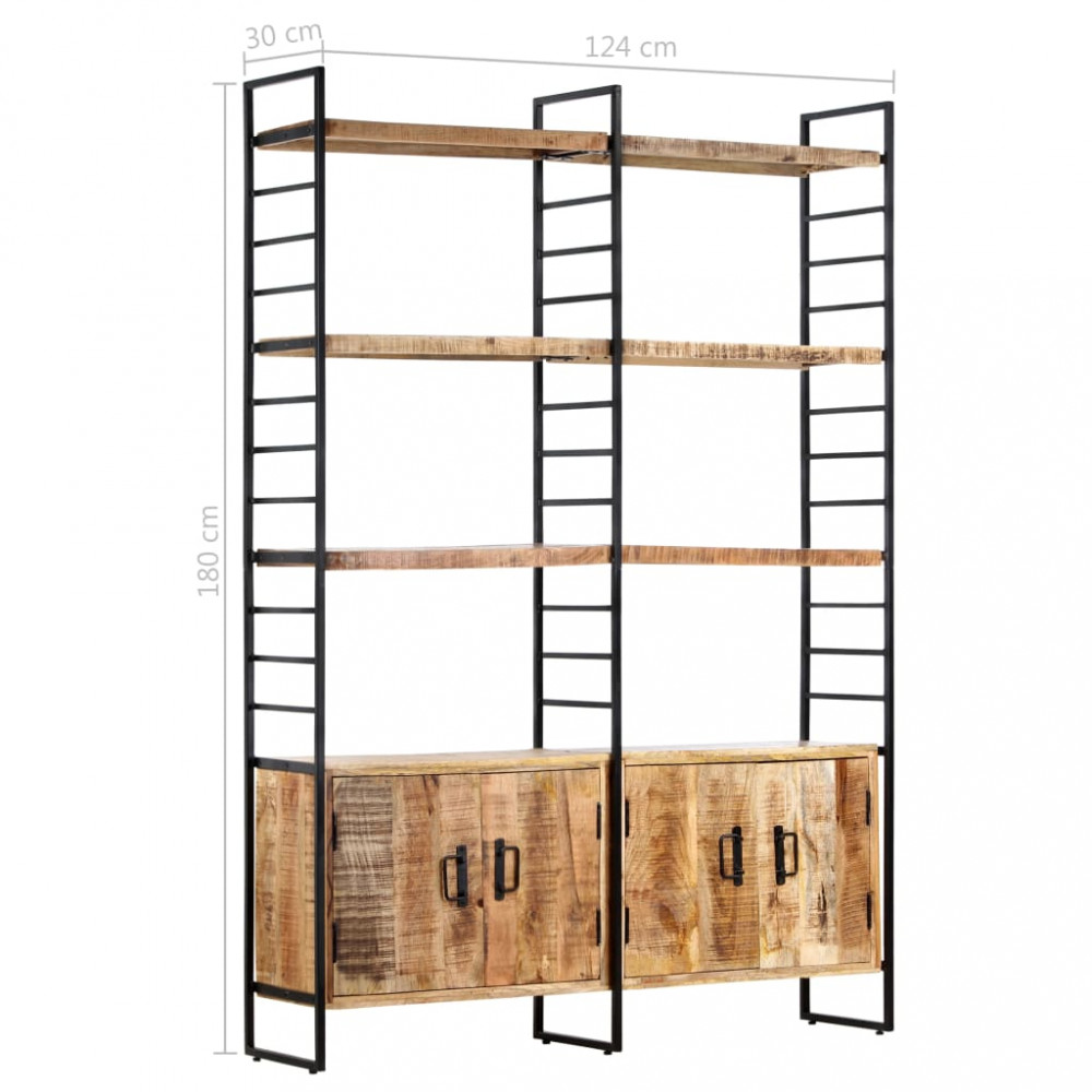 Vigyen egy kis ipari stílust otthonába vagy irodájába ezzel a négyszintes könyvszekrénnyel. A 6 polccal és 4 ajtóval ellátott könyvespolc ideális könyvgyűjteménye, magazinjai, iratai vagy dísztárgyai, például fotókeretek vagy emléktárgyak elhelyezésére. Masszív, porszórt felületű acélváza ipari megjelenést kölcsönöz a könyvespolcnak. A retró stílusú polcok nyers mangófából készültek, amely rendkívül stabil, tartós és gyönyörű. A kivitelezés minden lépését a legnagyobb gondosság jellemzi, legyen az a polírozás, a festés vagy a lakkozás. A kézműves munkának és a gyönyörű faerezetnek köszönhetően minden bútordarab egyedi, és kissé eltér a többitől. A kiszállítás véletlenszerűen történik.