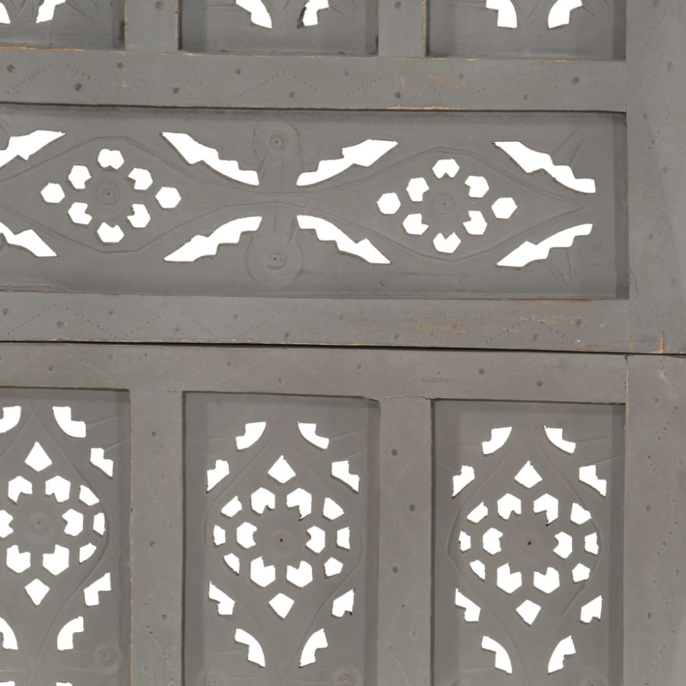 5-paneles szürke mangófa kézzel faragott térelválasztó 200x165cm
