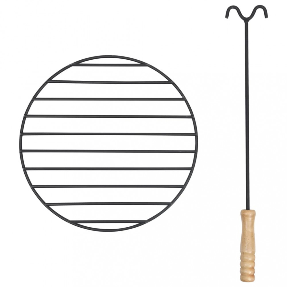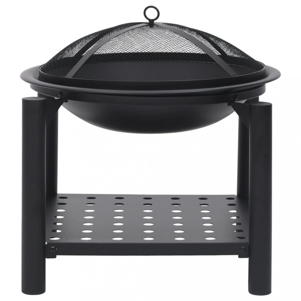 Ez a tűztál dekoratív és hangulatos kiegészítő lesz kertjében vagy teraszán, amikor az esti órákban lehűl a levegő. Ez az acélból készült tűzrakóhely kiválóan nyeli el és sugározza a hőt. A méretes tálnak köszönhetően nagy tűz rakható a tűztálban, amit órákig élvezhet családjával. A háló lehetővé teszi az égő tűz megfigyelését, elzárja a tüzet a biztonság érdekében, és megakadályozza a szikrák és a törmelék kirepülését. Emellett a hálós fedélben található kényelmes gyűrűvel könnyen hordozható. A mellékelt piszkavassal a hálós fedelet is leveheti, és a rönköket is átrendezheti. Emellett a polc további tárolóhelyet biztosít tűzifa elhelyezéséhez. Fontos megjegyzések: Csak kültéren használható. A sérülések és az égési sérülések elkerülése érdekében ne érjen a termékhez, ha égő fa van benne, vagy ha nemrég oltotta el benne a tüzet. Figyelem: Csak kültéri használatra. Soha ne használja a grillt a házban, zárt térben, sátor alatt, fa alatt vagy fák között. Ne használjon vagy öntsön benzint, metil-alkoholt vagy petróleumot a lángoló szénre. Helyezze egy szilárd és sík felületre, távol a fa kerítésektől, cserjéktől, fáktól, fészerektől és üzemanyagtartályoktól. A grill nagyon forróvá válhat. Tartsd távol a kisgyerekeket és háziállatokat a főzési területtől. Mindig egy felnőttnek kell felügyelnie a grill használatát. Ne mozgassa a grillt, miközben használatban van, vagy ha még mindig forró. A főzőrács állítása vagy kezelése során mindig használjon hőálló kesztyűt. A grillt legalább 30 percig fel kell melegíteni, és az üzemanyagot forrón kell tartani az első főzés előtt. A szén mennyisége nem haladhatja meg a szénrekesz kapacitásának 75%-át, és egyenletesen kell eloszlatni. FIGYELEM! A grill nagyon forró lesz használat közben. NE mozgassa működés közben. Ne használja beltérben! FIGYELEM! Tartsa távol a gyermekeket és háziállatokat. Ne használja a grillt zárt térben, például házakban, sátrakban, lakókocsikban, lakóautókban vagy hajókon. Nagy a veszélye a fulladásnak és a szén-monoxid mérgezésnek, ami akár halálhoz is vezethet.FIGYELEM: Ne használjon szeszt vagy benzint a be- vagy újragyújtáshoz!