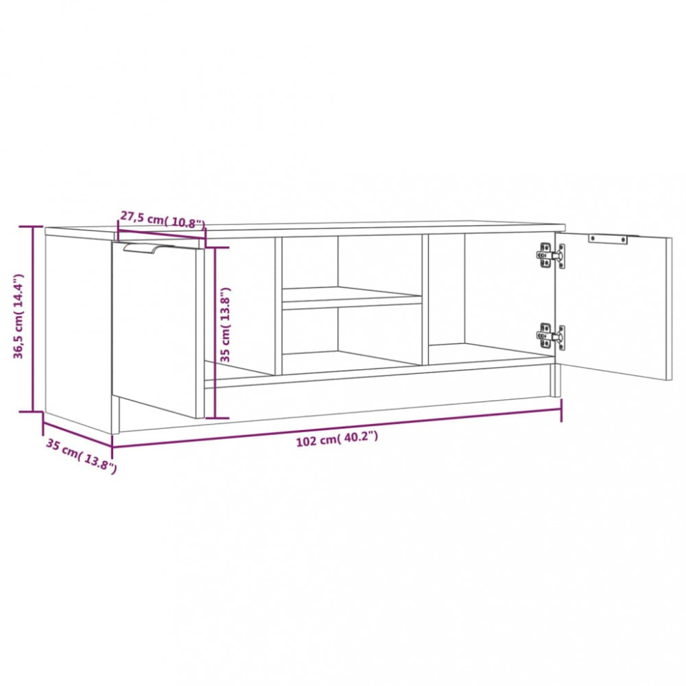 Ez a trendi TV-szekrény letisztult és stílusos kialakítású, így dekoratív és praktikus kiegészítője lesz szobája berendezésének. Prémium minőségű anyag: A szerelt fa kivételes minőségű, sima felületű, szilárd, stabil és ellenáll a nedvességnek.Bőséges tárolóhely: A TV-egység 2 zárt rekesszel és 2 nyitott rekesszel rendelkezik. A tárolóhely megkönnyíti holmija rendezett tárolását.Bemutatófunkció: A masszív lap ideális dísztárgyak, képkeretek és cserepes növények elhelyezésére.