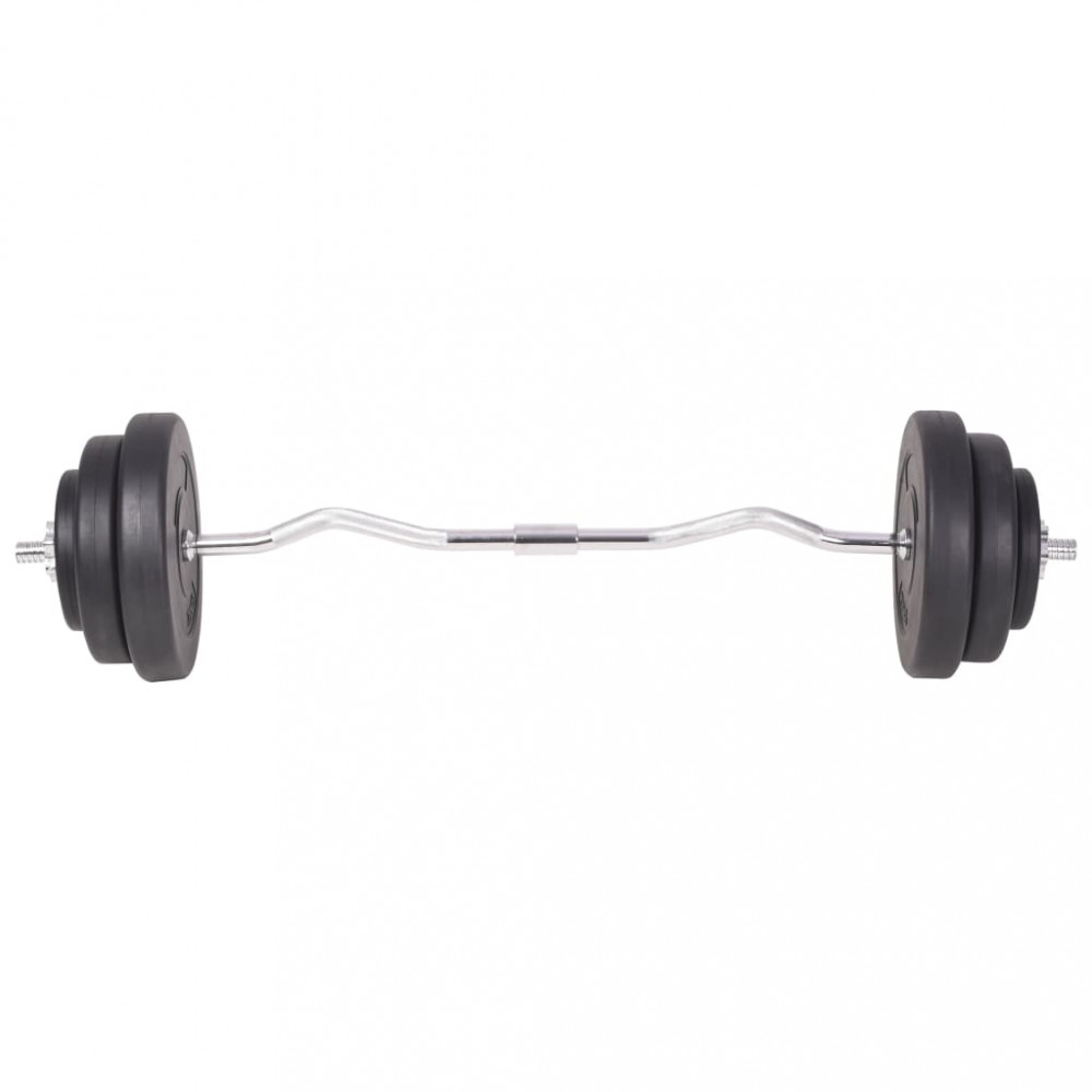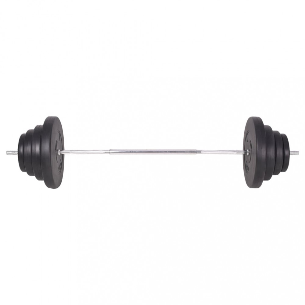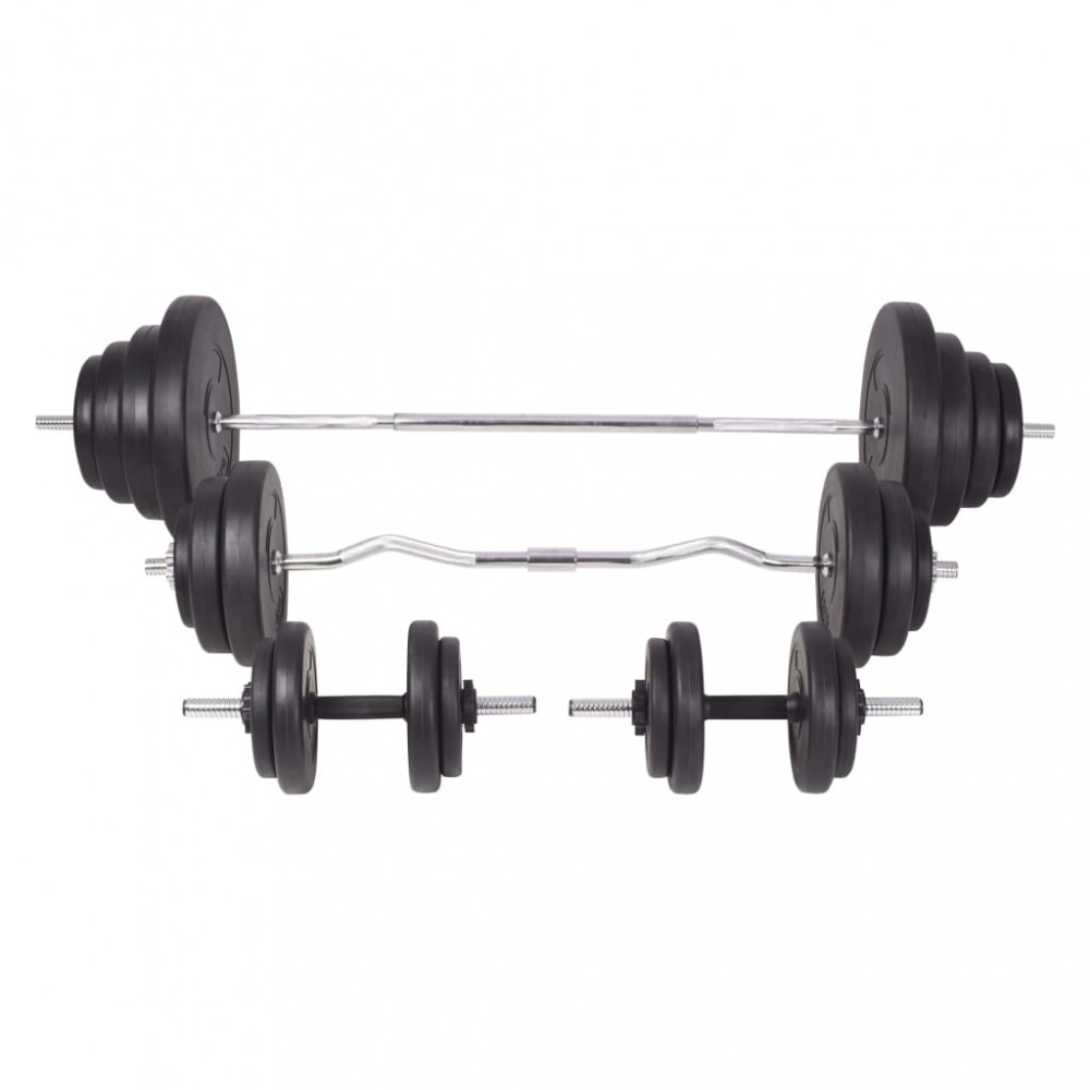 - Tárcsák súlya: 2 x 15 kg + 2 x 10 kg + 2 x 7,5 kg + 4 x 5 kg + 6 x 2,5 kg + 6 x 1,25 kg