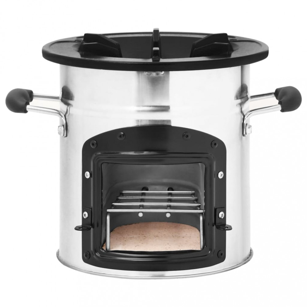ezüstszínű acél fatüzelésű kempingtűzhely 45,5 x 33 x 25,5 cm