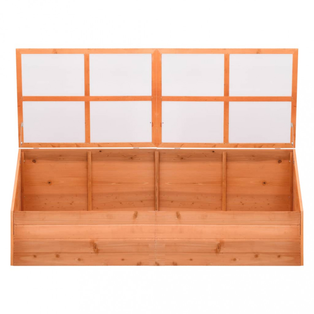 Ez a fából készült kerti melegház PC-lemezből és erős fából készült, amely tartós. Elég széles és mély ahhoz, hogy nagy mennyiségű föld férjen el benne, és bőséges helyet kínáljon növényei, zöldségei, fűszernövényei és virágai számára. A csuklós fedélnek köszönhetően a növények könnyen megöntözhetők vagy eltávolíthatók. Ezt a melegházat fűszer- és dísznövények védelmére tervezték, és kiegészíti a kültéri környezetét. A melegház remek megoldás lesz arra, hogy megvédje gyógynövényeit a hideg időjárástól, és fagyvédelmet nyújtson tavasszal. A melegágy könnyen összeszerelhető. Kérjük, vegye figyelembe, hogy a melegház teteje nem képes ellenállni az erős havazásnak. Figyelmeztetés: A melegház nem egy építmény vagy télikert, szabadidős célokra szolgál. Ez egy tartós, szabadon álló mezőgazdasági berendezés, amelyet kizárólag hobbikertészkedésre terveztek.