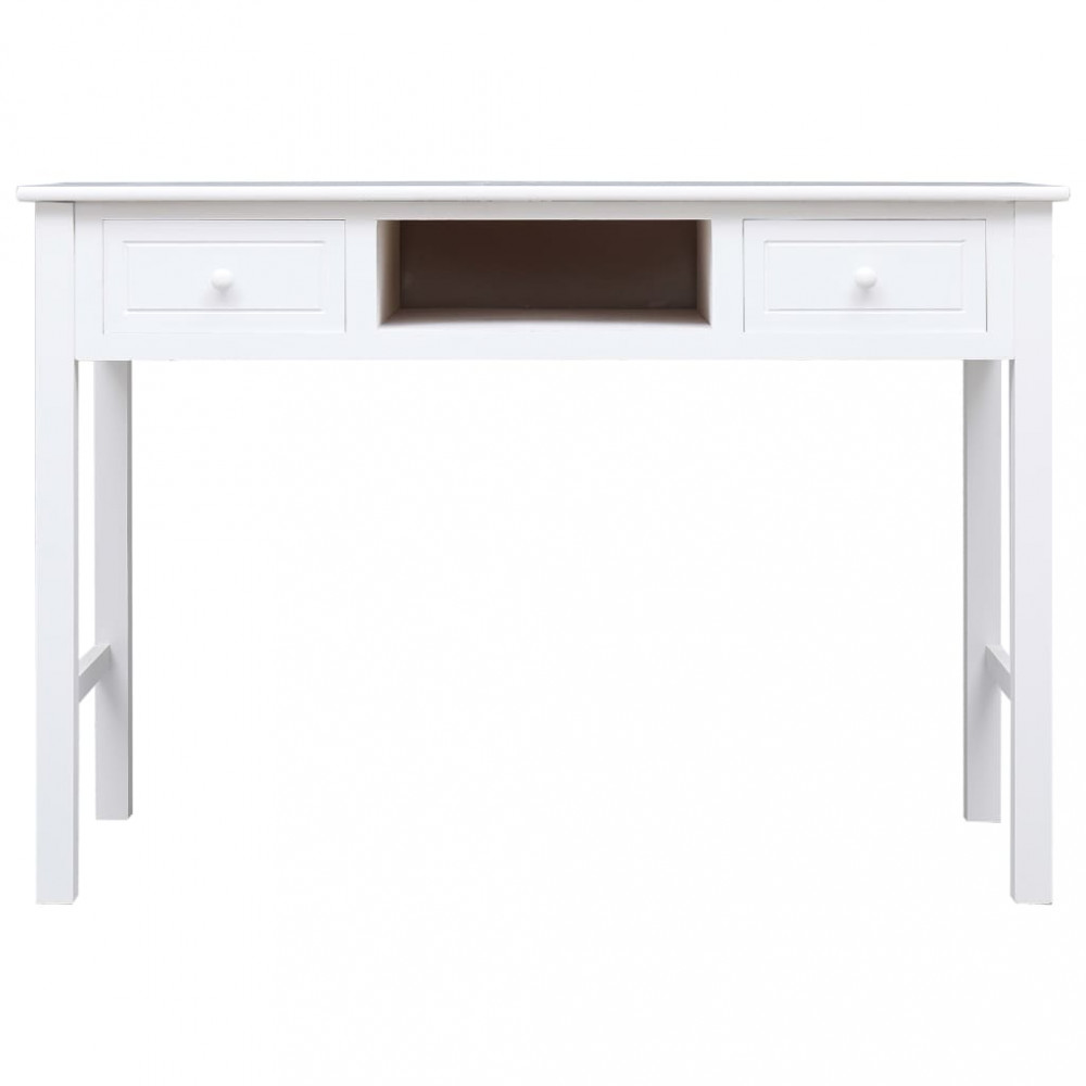 Ez a klasszikus, fából készült íróasztal régimódi bájával különleges darabja lesz otthonának vagy irodájának. Konzol-, számítógép-, tálalóasztalként stb. is használható. Minőségi császár- és nyárfából készült, így ez az íróasztal erős és tartós. 2 fiókkal és középen egy nyitott rekesszel rendelkezik, ahol iratait és egyéb otthoni irodaszereit rendezetten, kézközelben tárolhatja. Ez az íróasztal könnyen összeszerelhető.