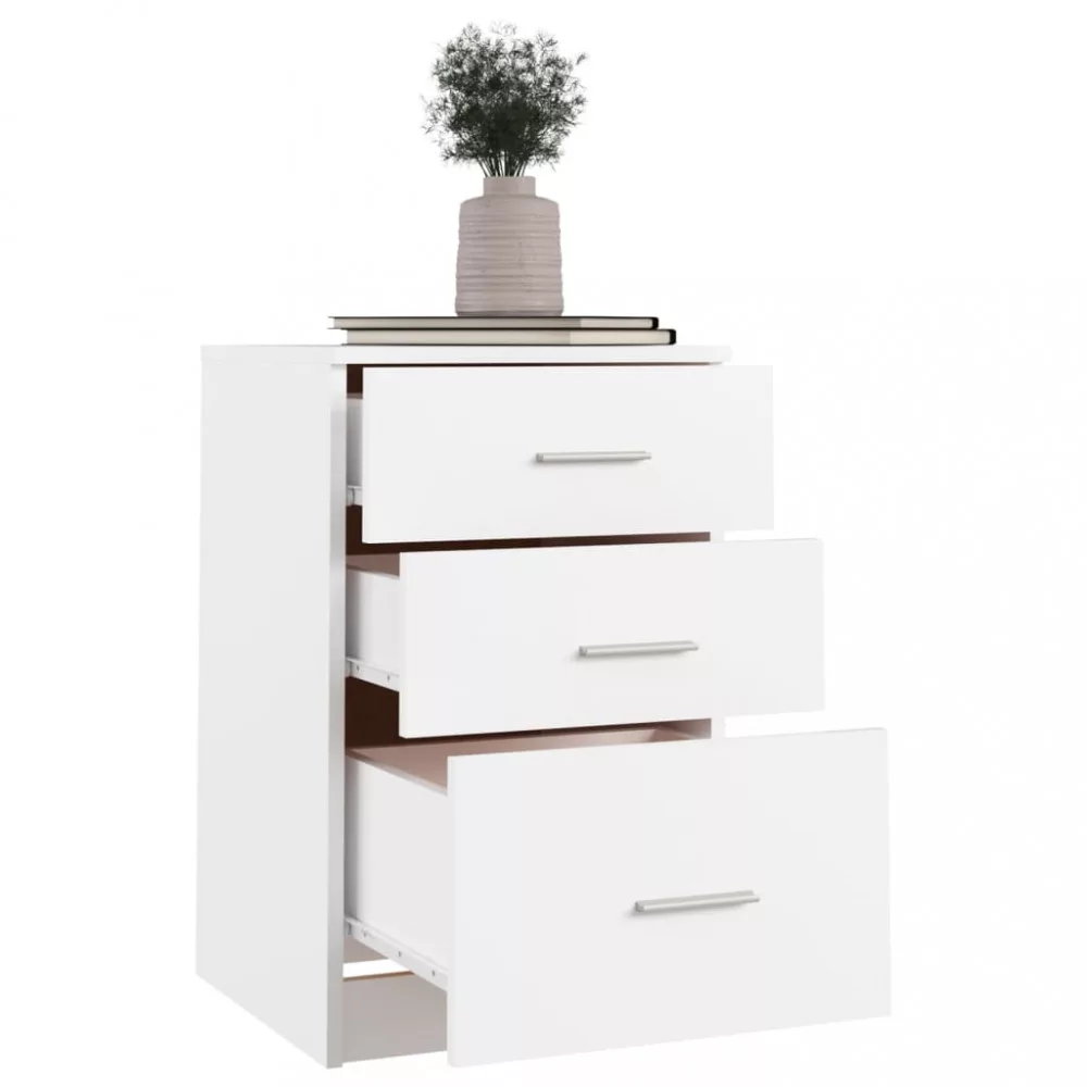 Ez a divatos éjjeliszekrény egyszerű, mégis praktikus kialakításával tökéletesen illik otthonába. Praktikus anyag: A szerelt fa kivételes minőségű, sima felületű, szilárd, stabil, és ellenáll a nedvességnek. A szerelt fából készült éjjeliszekrény könnyen tisztítható.Bőséges tárolóhely: Az éjjeliszekrények tágas fiókjai lehetővé teszik, hogy rendezetten tartsa holmijait.Időtlen megjelenés: A letisztult vonalaknak és a minimalista kialakításnak köszönhetően az ágy melletti asztal könnyen beleolvad környezetébe. Megjegyzés:Az egyszerű összeszerelés érdekében minden termékhez mellékelünk összeszerelési útmutatót.