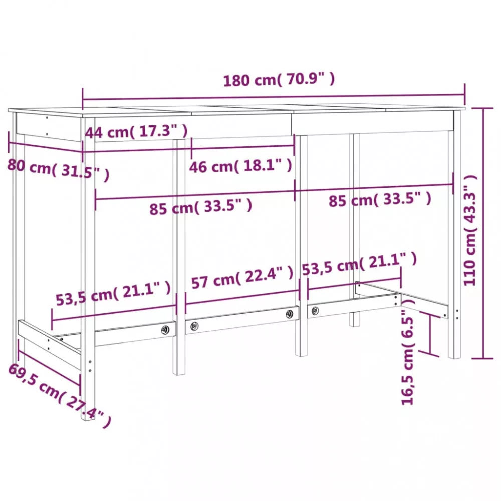 Kortyolgassa kedvenc borát vagy fogyasszon el egy kellemes vacsorát családja vagy barátai társaságában ennél a gyönyörű, fából készült bárasztalnál ülve. Tömör fenyőfa: Ez a rendezvényasztal tömör fenyőfából készült. A tömör fenyőfa egy gyönyörű, természetes anyag. A fenyőfa egyenes erezetű, a csomók adják az anyag jellegzetes, rusztikus megjelenését.Stabil váz: A faváz erős szerkezetet és stabilitást biztosít.Masszív asztallap: A bárasztal masszív lapja tökéletesen alkalmas italok, ételek és egyéb dísztárgyak elhelyezésére. Megjegyzés:Az egyszerű összeszerelés érdekében minden termékhez mellékelünk összeszerelési útmutatót.