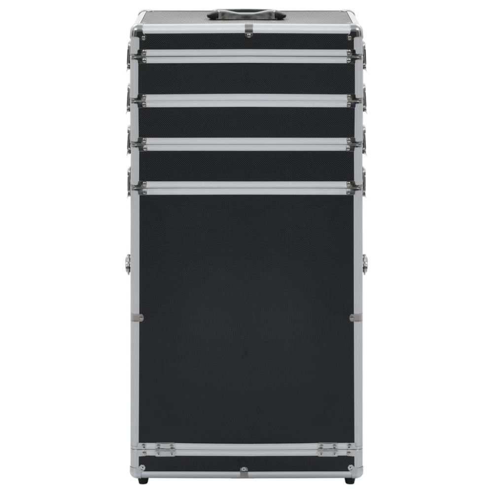 Sminkbőröndünk ideális megoldást biztosít kozmetikai szerei rendezetten tartására. Egyszerűen csak pakoljon be minden szükséges dolgot ebbe a kozmetikai táskába és vigye magával! Ez a fából, alumíniumból és ABS bevonattal készült sminkbőrönd egyszerű megoldást biztosít kozmetikai szerei tárolására és tökéletes állapotban való megőrzésére. Ez a sminkbőrönd 4 polccal és egy fiókkal lett ellátva, melyek bőséges helyet biztosítanak kozmetikai és szépségápolási szerei számára. 4 levehető görgőkerékkel rendelkezik, melyek segítségével könnyen mozgatható és bárhová magával vihető.