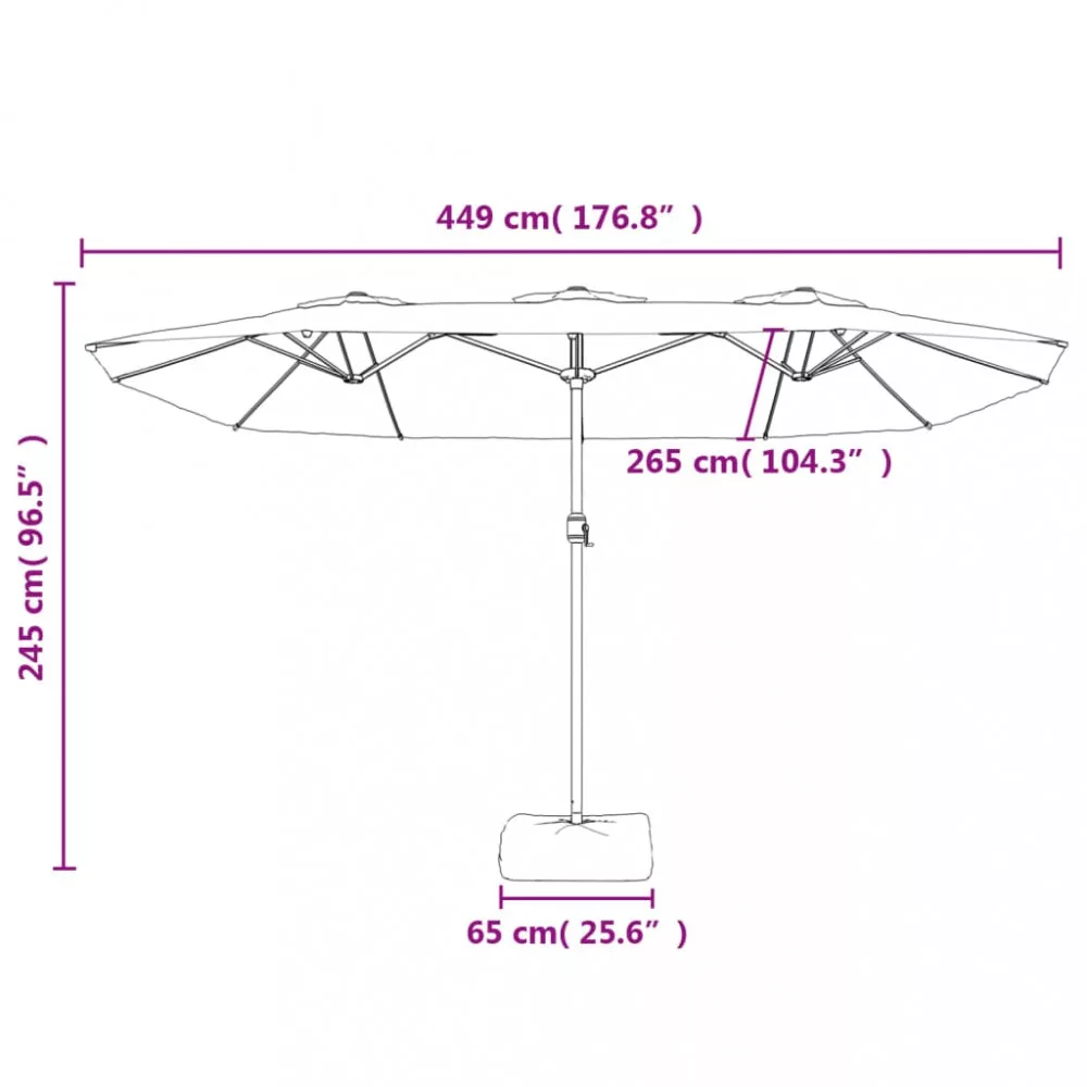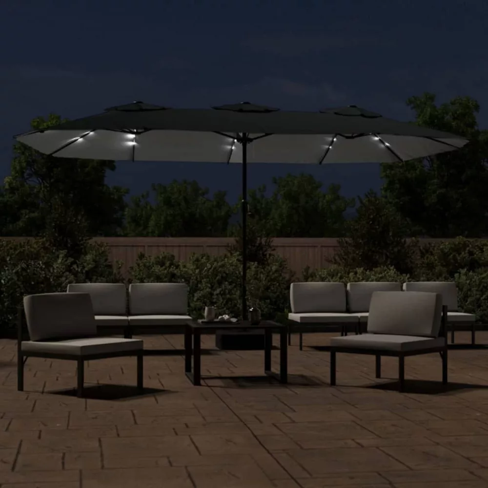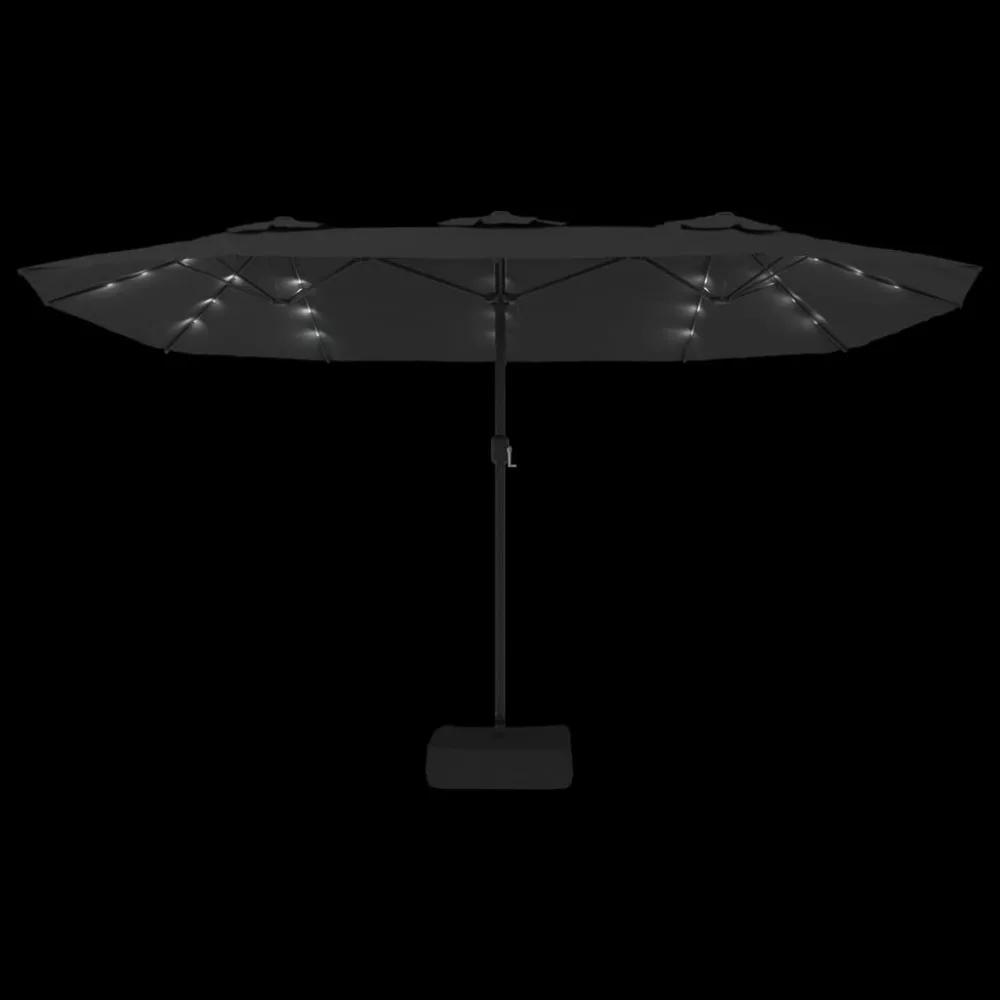 fekete dupla tetős napernyő LED-ekkel 449x265 cm