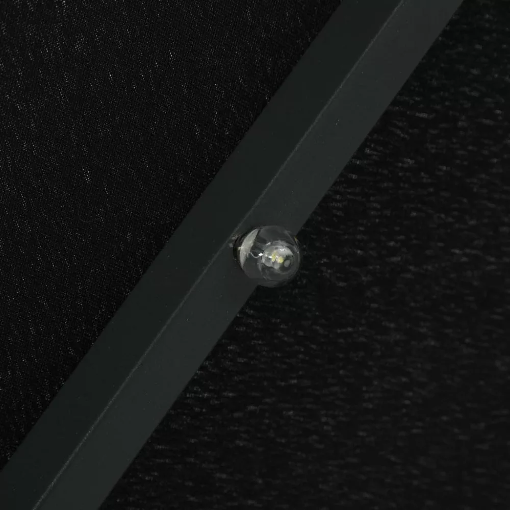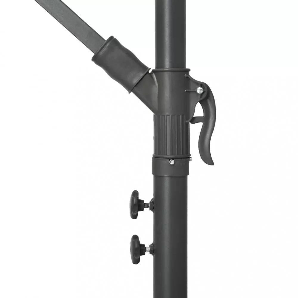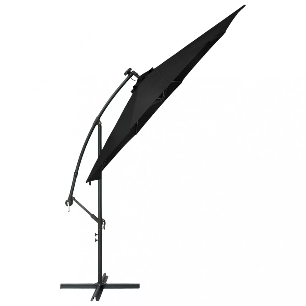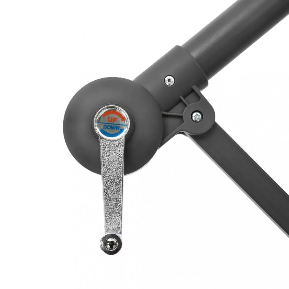 Ez az elegáns függő napernyő a LED-fényeivel tökéletes megoldás arra, hogy árnyékot teremtsen és megvédjen a nap káros UV sugárzásával szemben. Az UV-sugárzás ellen védő, fakulásmentes poliészterből készült napernyő-ponyva optimális védelmet nyújt a nap sugaraival szemben; tisztítása pedig egyszerű. 24 db napelemes LED-lámpája naplemente után automatikus felkapcsol és megvilágítja az ernyő környezetét, meghitt és romantikus hangulatot teremtve. Stabillá teszi a napernyőt a masszív kereszttalp. Különleges kialakításának köszönhetően a napernyő dönthető, így folyamatosan takarást biztosít a délután során a horizont felé ereszkedő nap elől. Az erős acél tartórúd és a 8 strapabíró borda rendkívüli stabilitást és szilárdságot biztosít a napernyőnek. A tekerőkaros mechanizmusnak hála a kerti ernyő könnyen kinyitható és becsukható. A termék összeszerelése egyszerű. Kérjük, vegye figyelembe, hogy javasolt impregnáló spray-vel befújni a napernyő szövetanyagát, ha az heves esőzéseknek is ki lehet téve. Fontos, hogy minden olyan terméket, amelyet csavarok segítségével szereltek össze, két héttel az összeszerelés után újra meghúzzanak, és minden három hónapban egyszer - annak érdekében, hogy biztosítsák a termék stabilitását a teljes élettartama alatt. Ne húzza meg teljesen a csavarokat, amíg az összes csavar nincs megfelelően rögzítve. Tartsa távol a gyerekeket és háziállatokat az összeszerelési területtől az összeszerelés során. Bánjon óvatosan a nehéz alkatrészekkel. Győződjön meg róla, hogy a termék teljes mértékben össze van szerelve az ábrának megfelelően, mielőtt használatba veszi. Ezt a terméket csak szilárd, sík talajon szabad használni. Ügyeljen arra, hogy a terméket mindig sík talajon helyezze el. Nem vállalunk felelősséget a termék helytelen használatából eredő károkért vagy sérülésekért. Tartsa távol a kezét a hajtogatási mechanizmusoktól és mozgó alkatrészektől a lehetséges sérülések elkerülése érdekében. Soha ne használja vagy nyissa ki ezt az árnyékolót megfelelő alap nélkül. Ne használja ezt az árnyékolót erős szélben és esőben. Ennek elmulasztása személyi sérüléseket és/vagy károkat okozhat. Mindig zárja be az árnyékolót és tegye rá a takarót, ha a szél erősebb, mint egy „mérsékelt szellő”, ha hó esik, vagy ha esik az eső. A termék apró részeket tartalmaz, amelyek veszélyeztethetik a kisgyermekeket. Tartsa távol az apró részeket a gyermekektől. Ez a termék nem játék! Ügyeljen arra, hogy a gyermekek ne használják sem az árnyékolót, sem a napernyőt, sem az alapot játékra vagy mászásra. Ne használjon nyílt tüzet (pl. kerti grillező vagy sütő) közvetlenül a termék alatt vagy mellett. Ha a szélsebesség meghaladja a 6 m/s-t, vagy erős eső esetén, óvatosan távolítsa el a terméket, hajtsa össze, rögzítse, és helyezze biztonságos helyre. Ha a szövet váratlanul nedves lesz, azonnal szárítsa meg, hogy elkerülje a termék idő előtti öregedését. Használat előtt ellenőrizze, hogy a pavilon, sátor, napernyő vagy lugas nincs-e sérült állapotban (meggörbült fémelemek, szakadt szövet). Ha sérülést talál, ne használja a terméket. Ezeknek az irányelveknek a be nem tartása károsodáshoz vezethet.