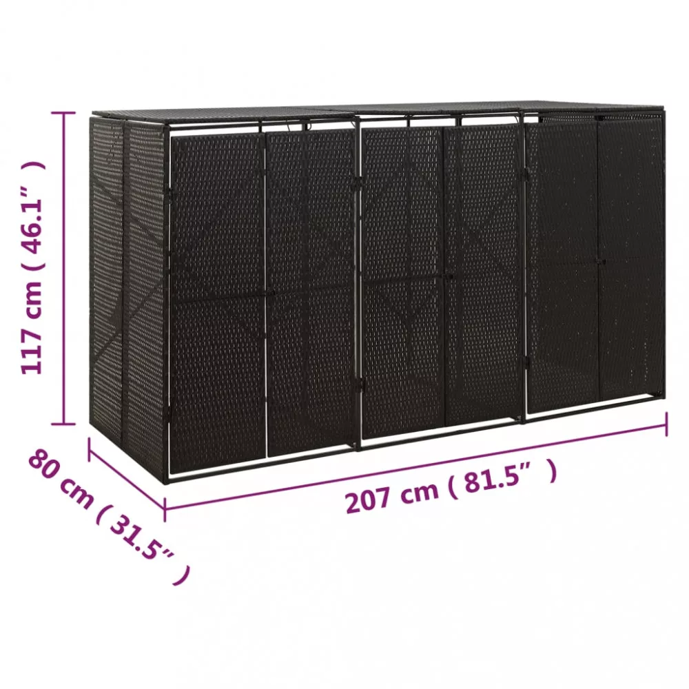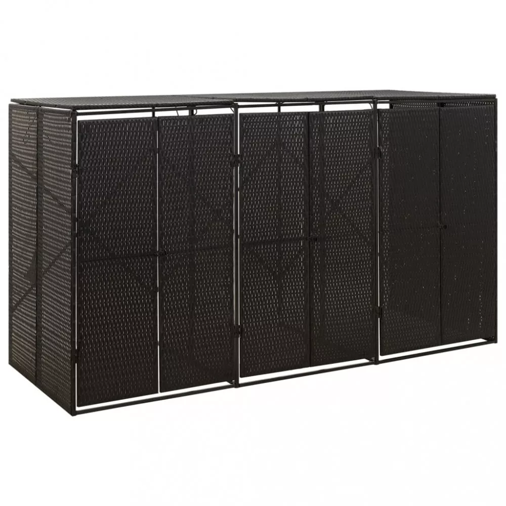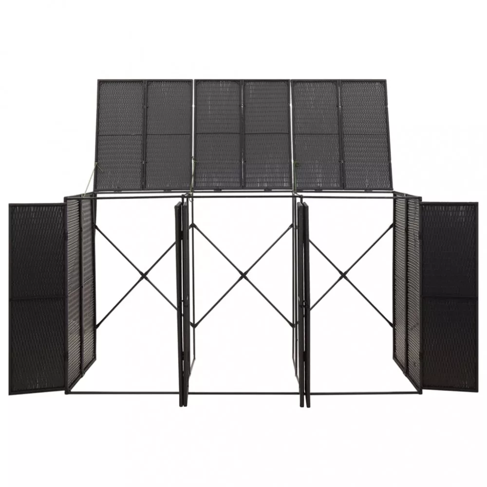 fekete polyrattan hármas kerekeskuka tárolófészer 207x80x117 cm