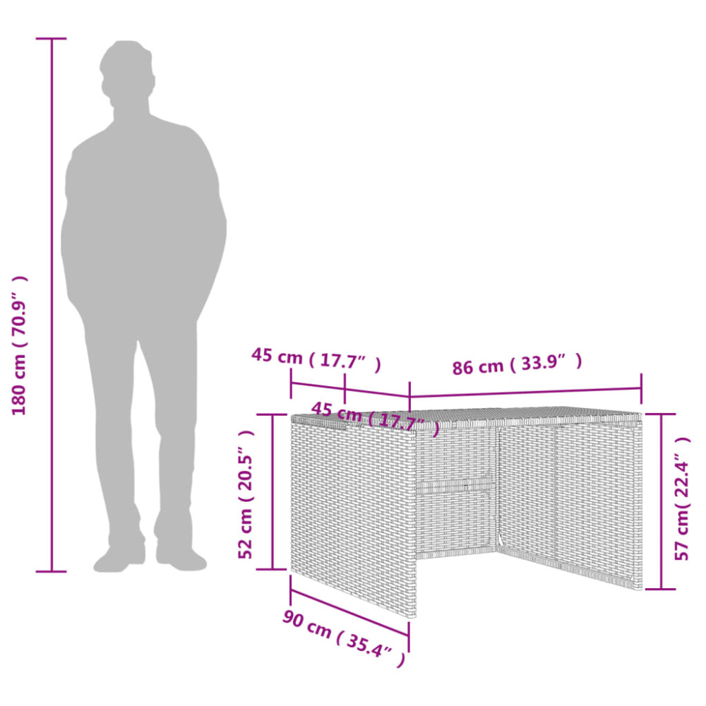 - Teljes mérete: 86 x 90 x 52/57 cm (Szé x Mé x Ma)