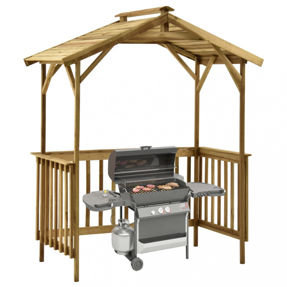 Élvezze a grillezést a szabadban ezzel az impregnált fenyőfa fészerrel! Ideális különféle kerti tárgyak, például kerti szerszámok, kerti bútorok vagy bármely más, a szabadban tárolni kívánt tárgy tárolásához is. A tárolófészer fenyőfából készült, amely rothadásálló. A tető döntött, így megvédi holmiját az esőtől és a hótól. Figyelem: a fa egy természetes anyag, így lehetnek rajta tökéletlenségek.