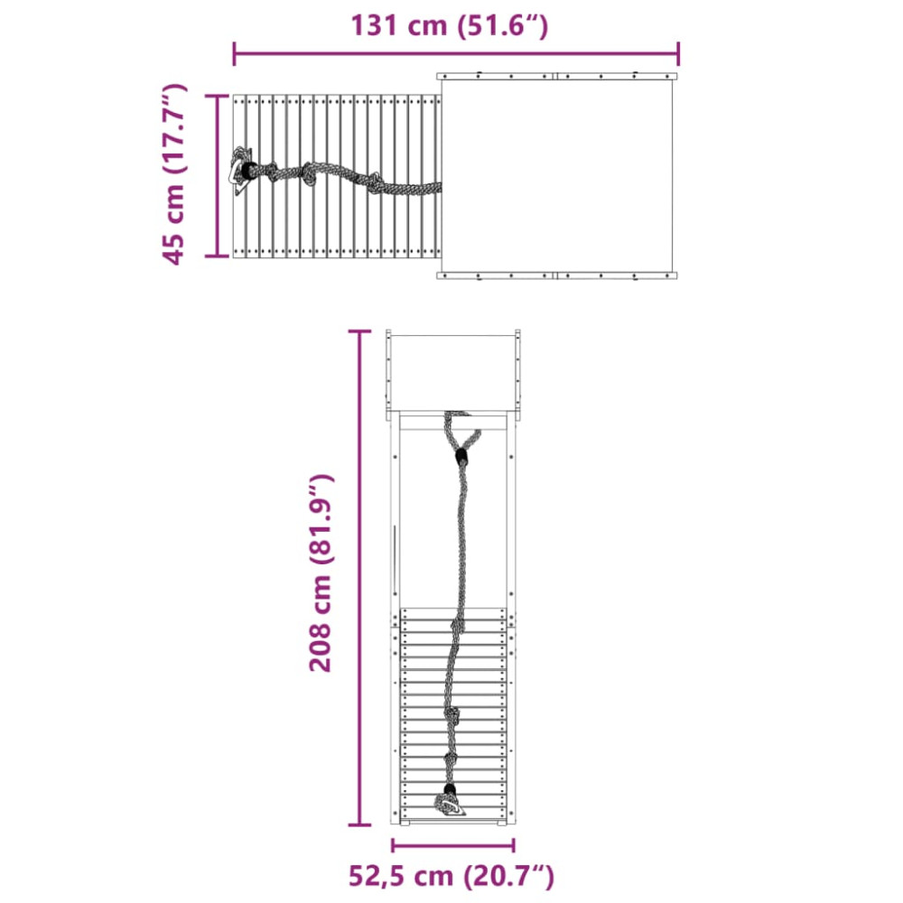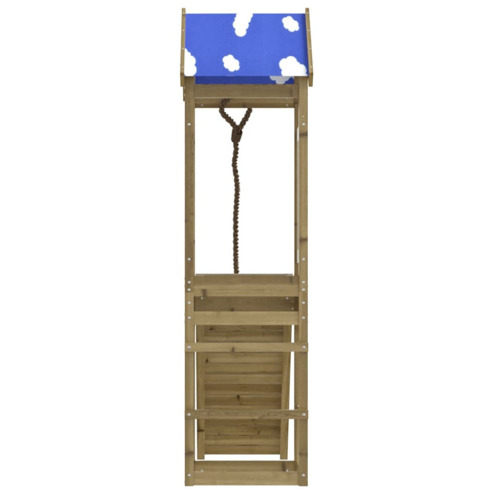 - Játszótorony anyaga: vákuumos nyomással impregnált fenyőfa