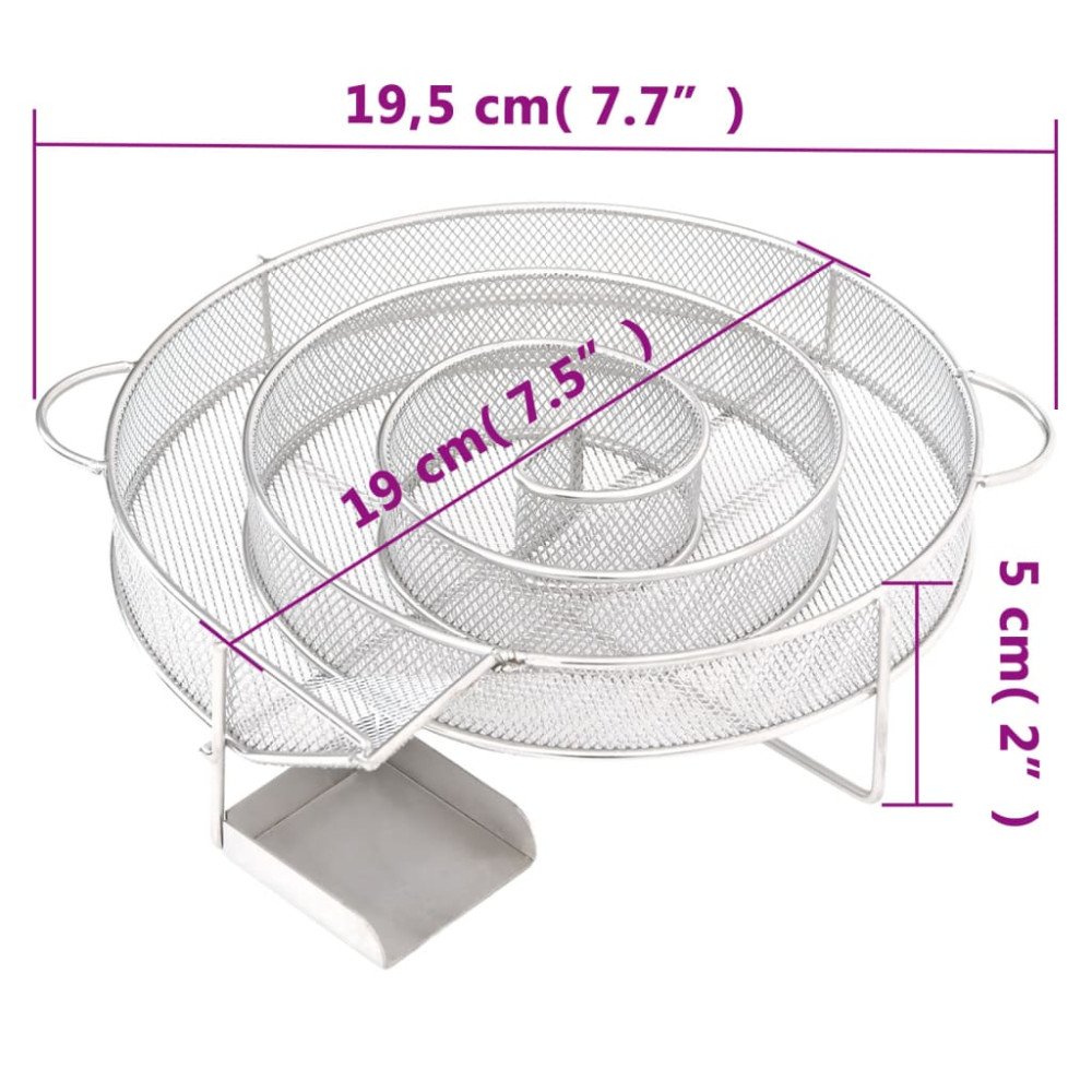 Adjon ételeinek finom füstös ízt a hidegfüst-generátorral! Ideális halak, húsok, szárnyasok, sajtok, zöldségek stb. füstölésére. Tartós anyag: Ez a hidegfüstölő kiváló minőségű 304-es rozsdamentes acélból készült, amely ellenáll a korróziónak és az oxidációnak. Emellett mosogatógépben is mosható.Masszív rácsszerkezet: A csiga alakú kompakt háló lehetővé teszi a füstölőforgácsok egyenletes és lassú égését akár 7 órán keresztül. Az időtartam nagymértékben függ a füstölőfa természetétől. A legjobb eredmény elérésének érdekében 0,5-2,0 mm szemcseméretű forgács használata javasolt.Könnyen használható: Egyszerűen töltse fel fűrészporral, és gyújtsa meg egy teamécsessel, amíg a fűrészpornak el nem kezd megváltozni a színe. Vegye ki a teamécsest, és helyezze be a füstölőt.Széleskörű felhasználás: A hidegfüstölő-generátort különféle típusú füstölőkben használhatja, például füstölőszekrényben, asztali füstölőben, gázgrillező-betétben, grillsütőben, saját készítésű füstölőben, zárt grillsütőben stb. Tartsa távol a gyermekeket és háziállatokat a füstgenerátortól gyújtáskor. Ne használja beltéren. Ne használja a grillt zárt és/vagy lakható helyiségekben, például házakban, sátrakban, lakókocsikban, lakóautókban, hajókon. A szén-monoxid mérgezés veszélye, ami halálos lehet.