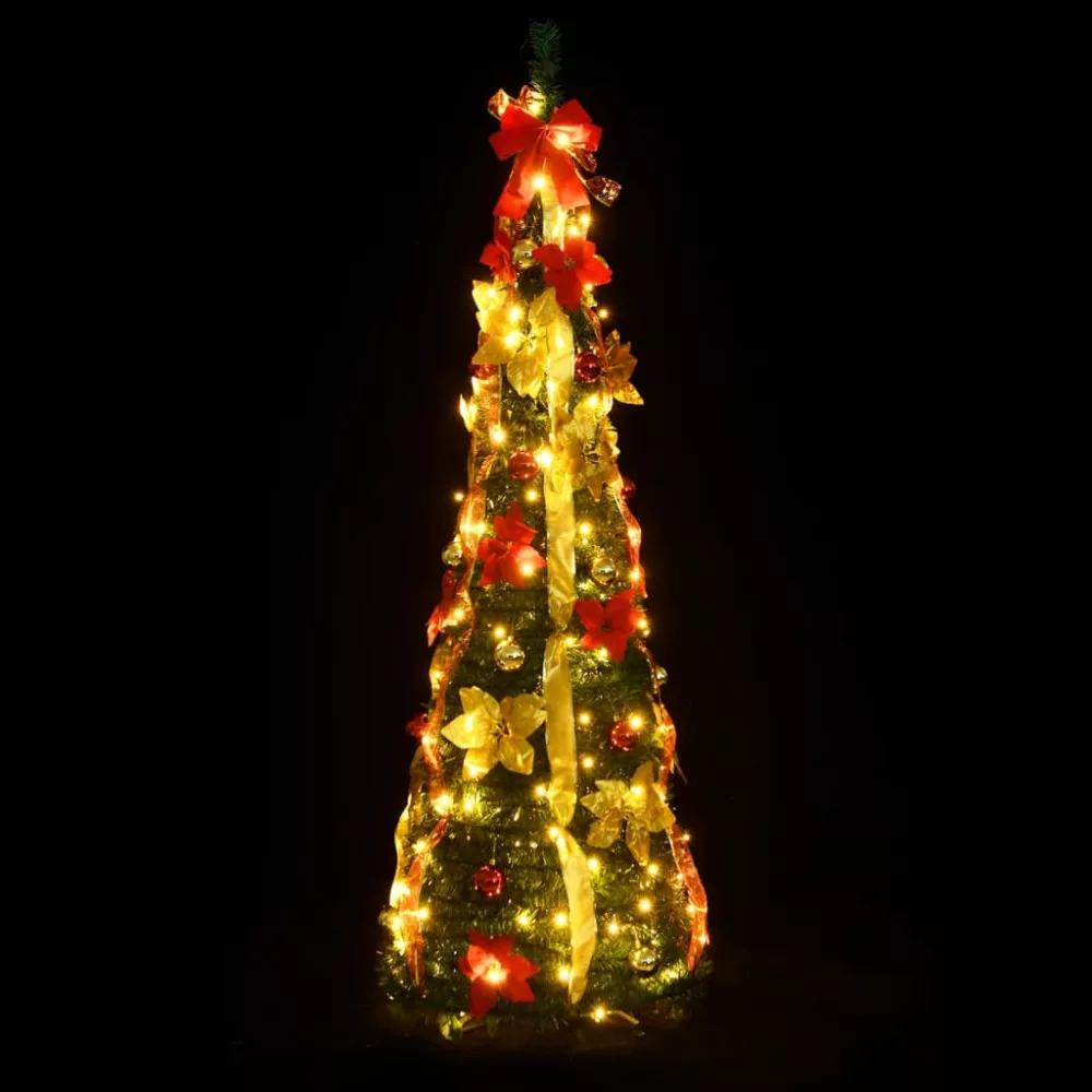 - 4 szalaggal, 2 nagy masnival, 16 virággal és 16 gömbbel díszítve