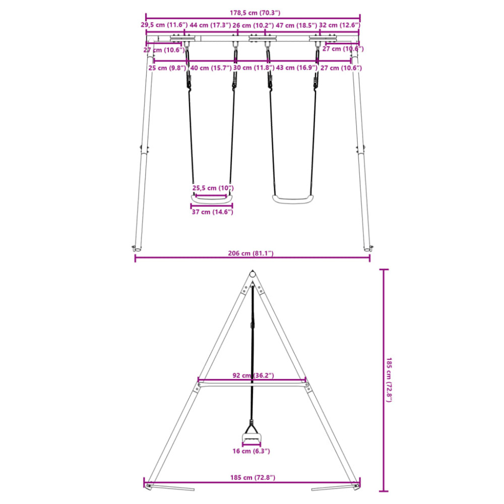 - Max. teherbírás (hintánként): 50 kg