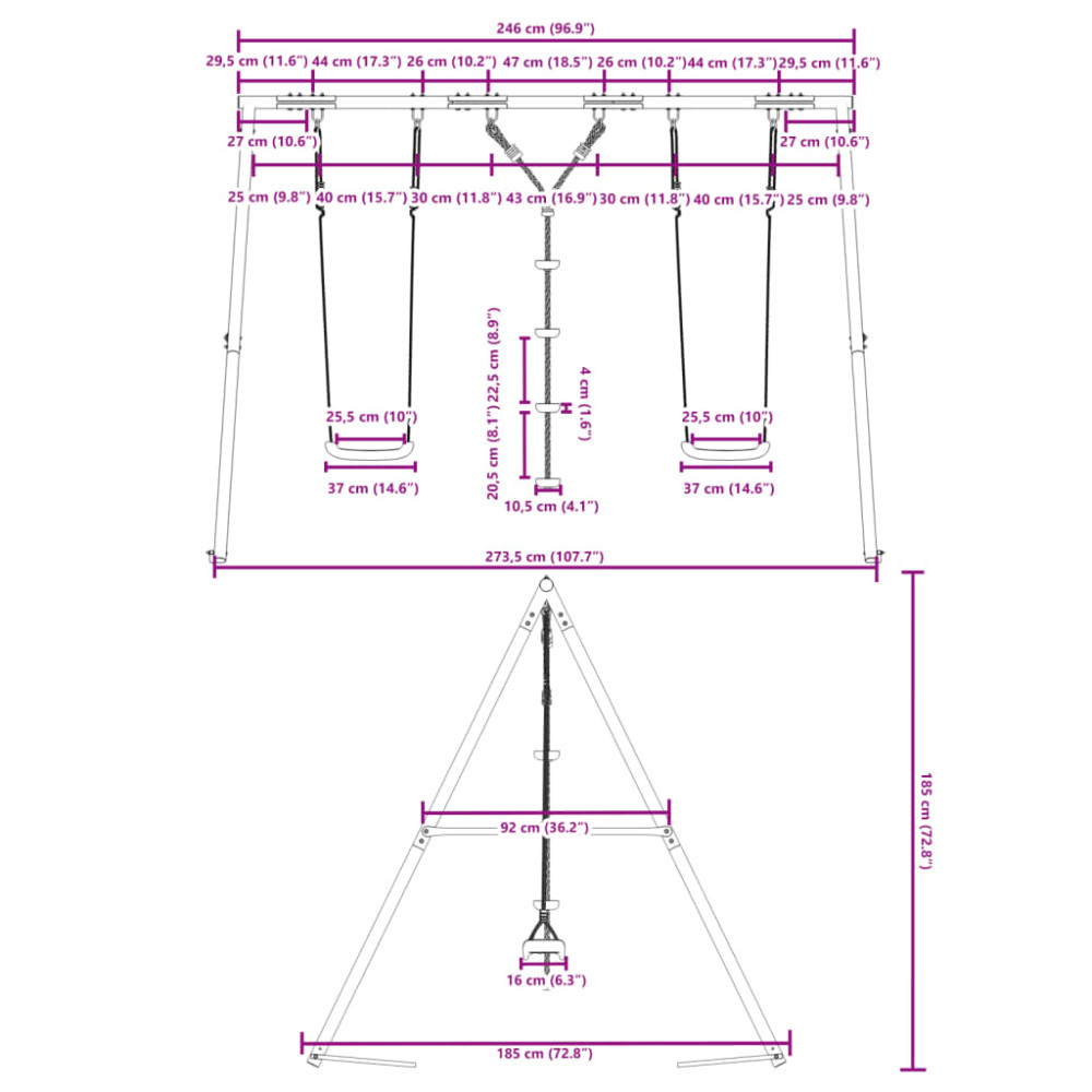- Max. teherbírás (hintánként): 50 kg