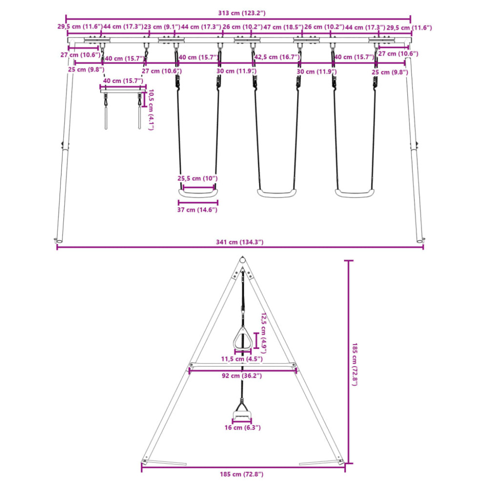 - Max. teherbírás (hintánként): 50 kg