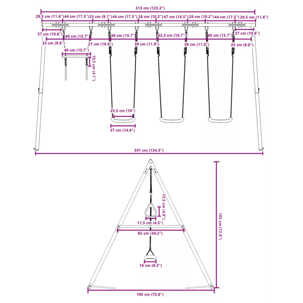 - Mérete: 341 x 185 x 185 cm (Ho x Szé x Ma)
