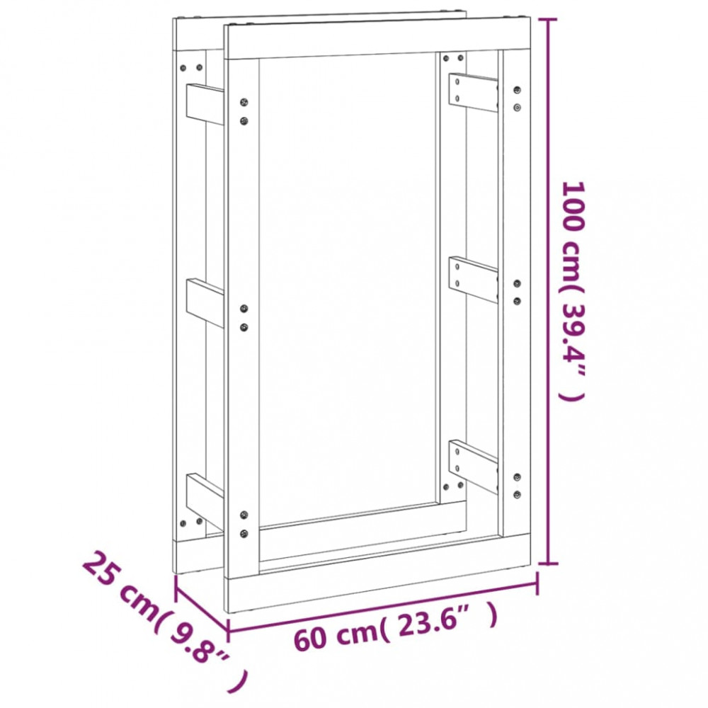 mézbarna tömör fenyőfa tűzifatartó állvány 60 x 25 x 100 cm