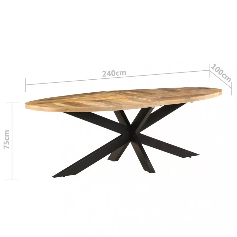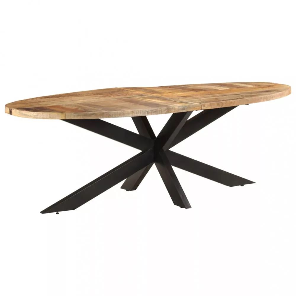 Élvezze a tökéletes étkezéseket családjával vagy barátaival ezen a fából készült étkezőasztalon minden nap! Az étkezőasztal nyers mangófából, egy trópusi keményfából készült, amely elég erős, hogy elbírja a ránehezedő súlyt, és időtálló is, így stabil és tartós. A porszórt acéllábak tovább növelik szilárdságát. A kifinomult kézműves munkának és a gyönyörű faerezetnek köszönhetően minden darab kissé különbözik a többitől. A masszív asztallapra ételeket, italokat és egyéb dísztárgyakat helyezhet. Figyelem: A szín és az erezet minden darab esetében eltérő lehet, így ezek a bútorok mind egyediek; a kiszállítás véletlenszerűen történik.