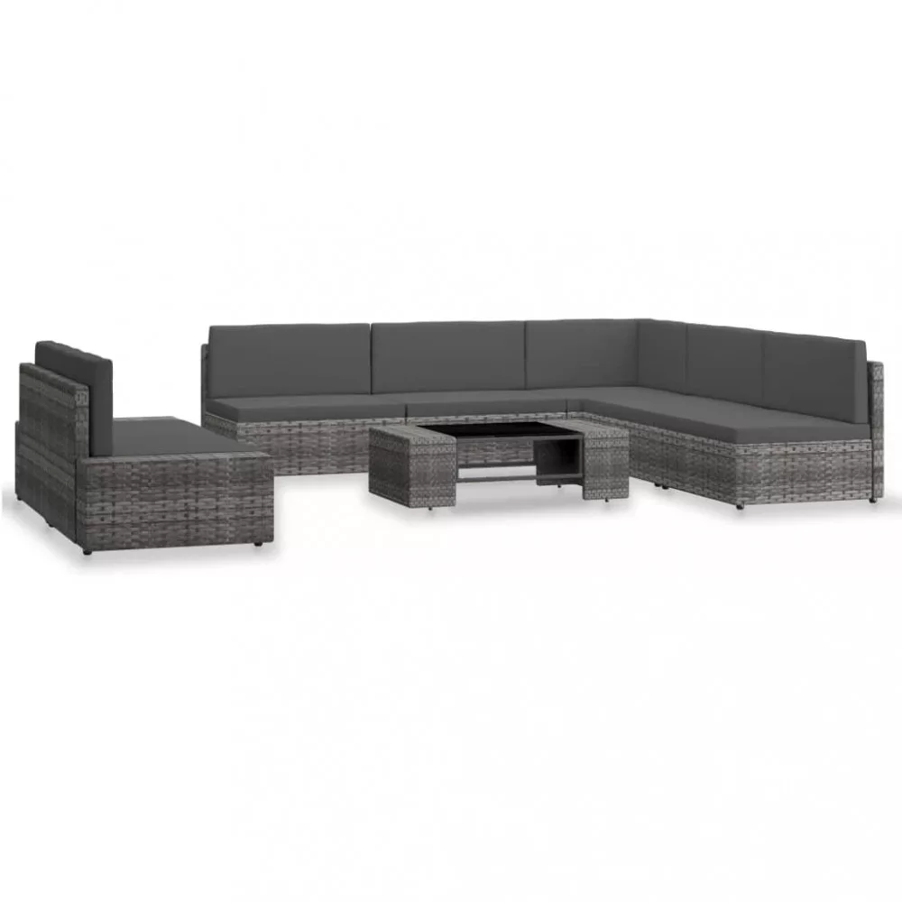- Anyaga: PE rattan, szövet (100% poliészter), porszórt acél, edzett üveg