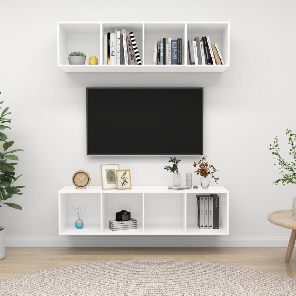 2 db fehér szerelt fa falra szerelhető TV-szekrény
