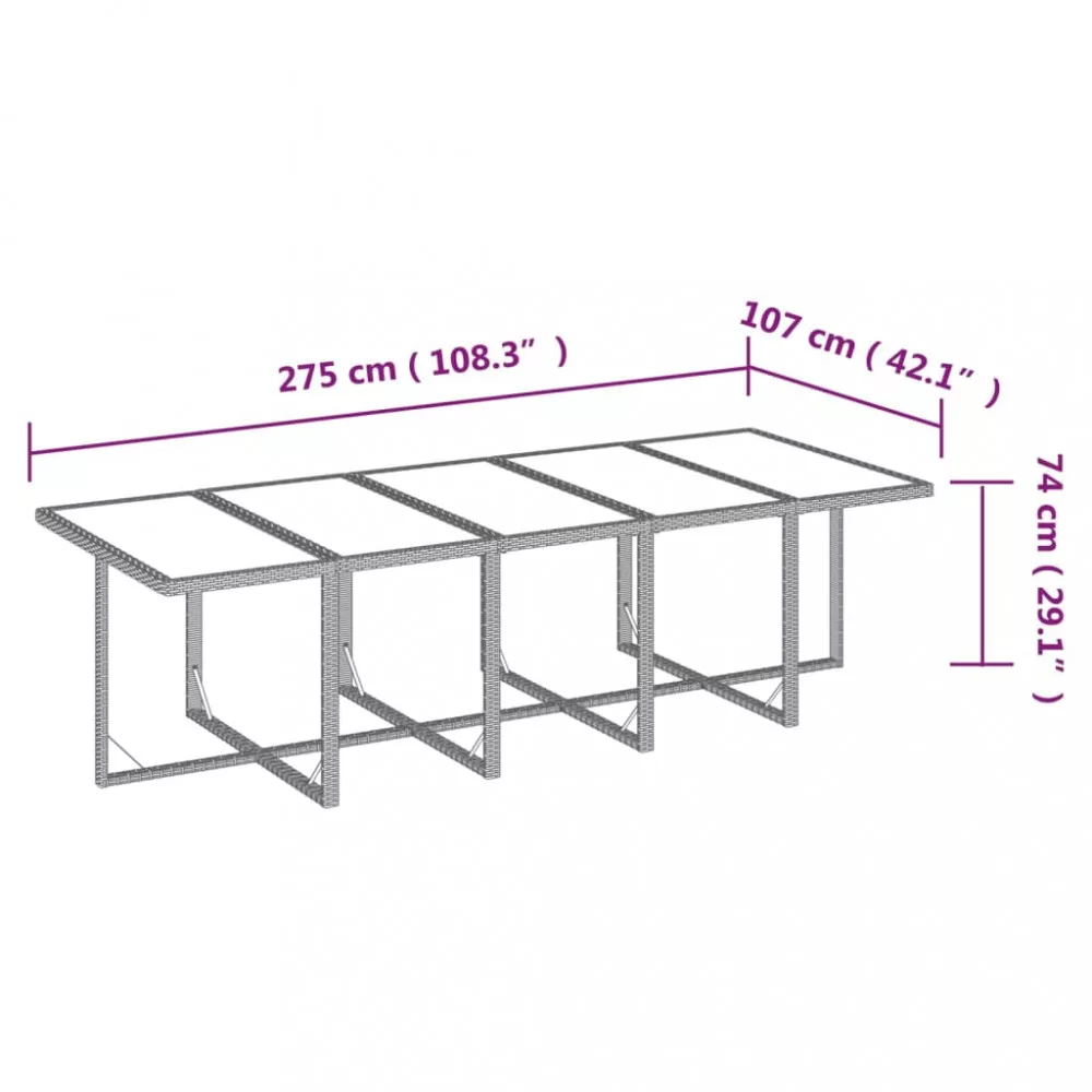- Asztal teljes mérete: 275 x 107 x 74 cm (Ho x Szé x Ma)