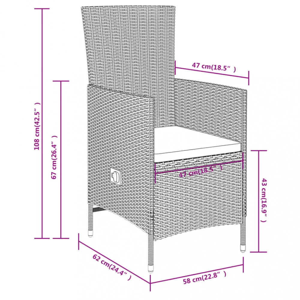 - Anyaga: PE rattan, porszórt acél, üveg