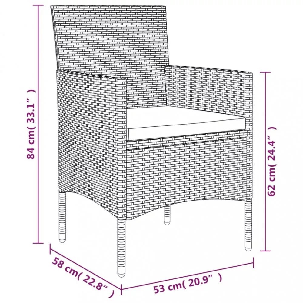 - Anyaga: polyrattan, porszórt acél, szövet (100% poliészter)