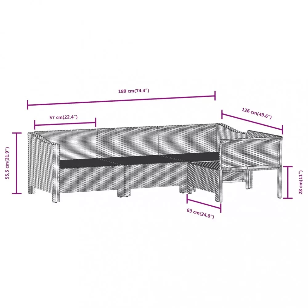 - Anyaga: polyrattan, porszórt acél