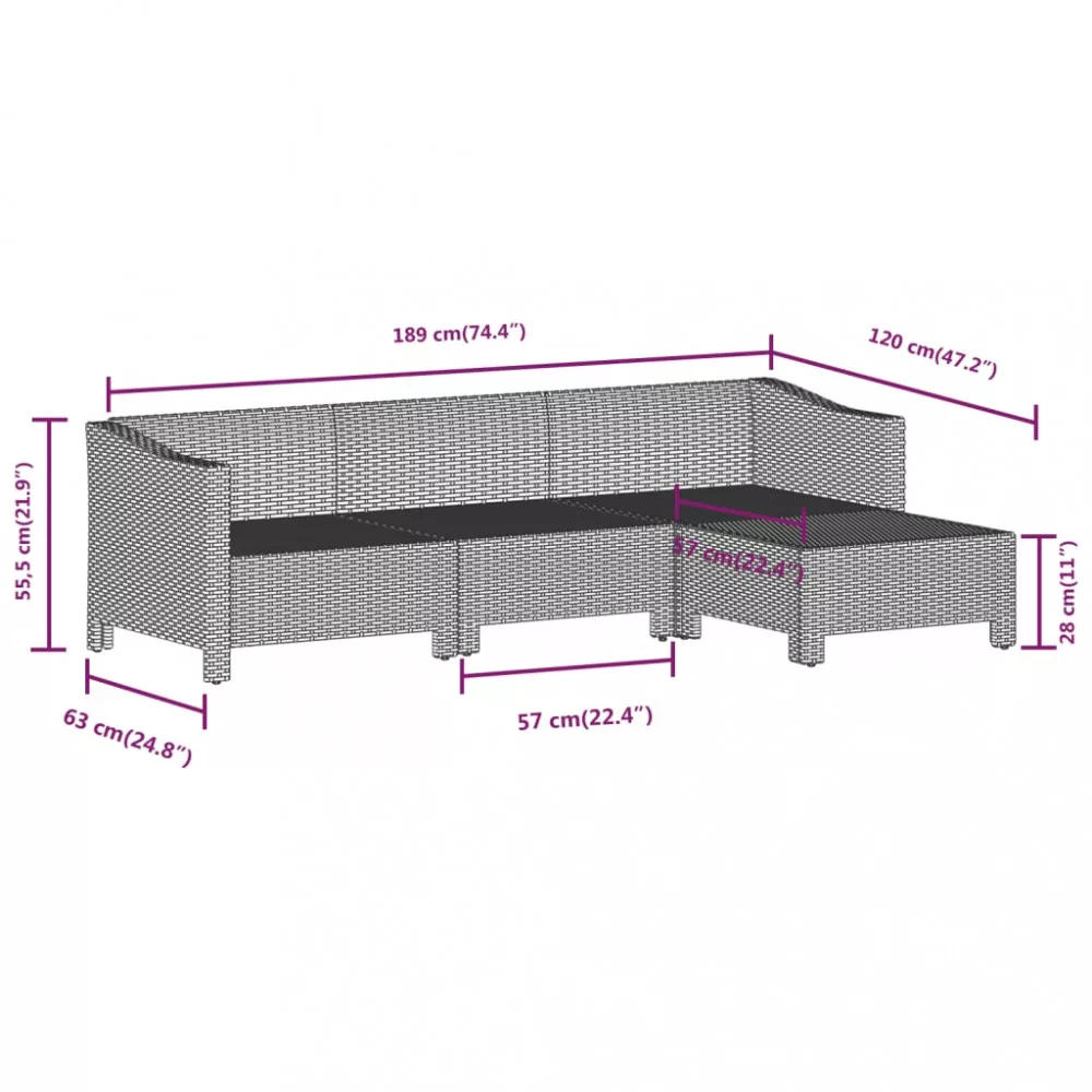 - Anyaga: polyrattan, porszórt acél