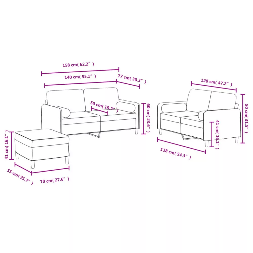 - Kétszemélyes kanapé (140 cm):