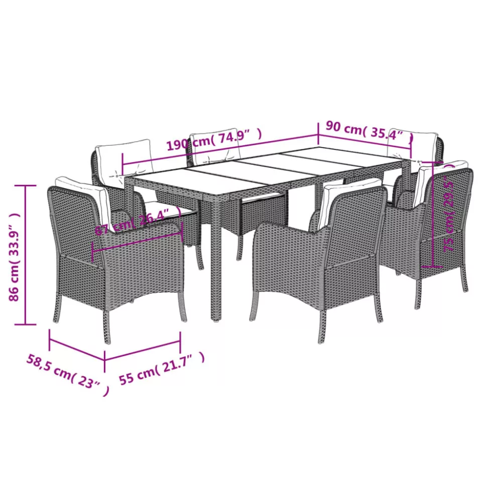 - Anyaga: polietilén rattan, porszórt acélváz, edzett üveg