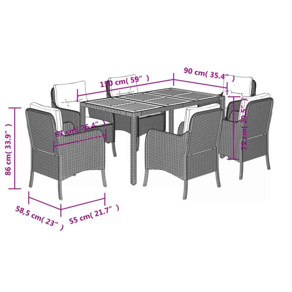 - Anyag: polietilén rattan, porszórt acél, tömör akácfa olajos felületkezeléssel
