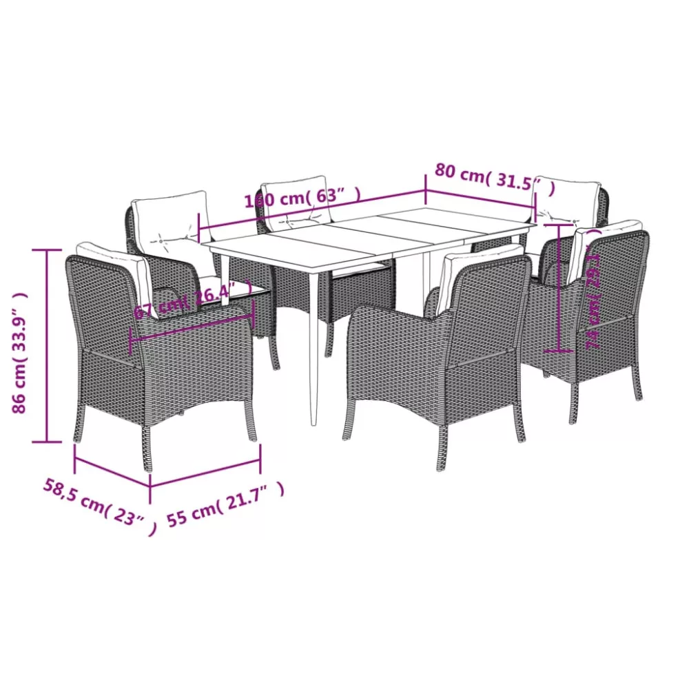- Anyaga: polietilén rattan, porszórt acélváz, edzett üveg