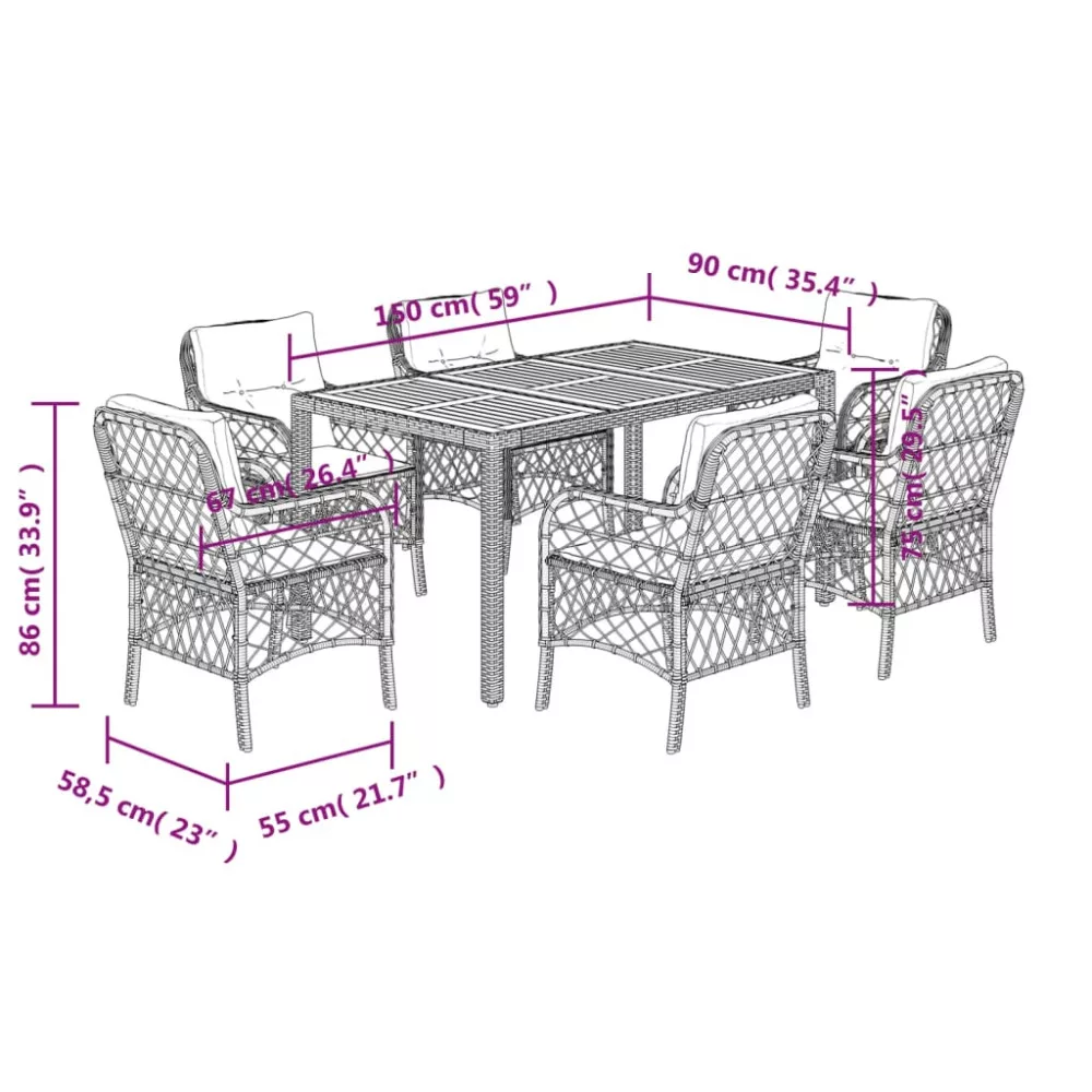 - Anyaga: polietilén rattan, porszórt acél, tömör akácfa olajos felületkezeléssel