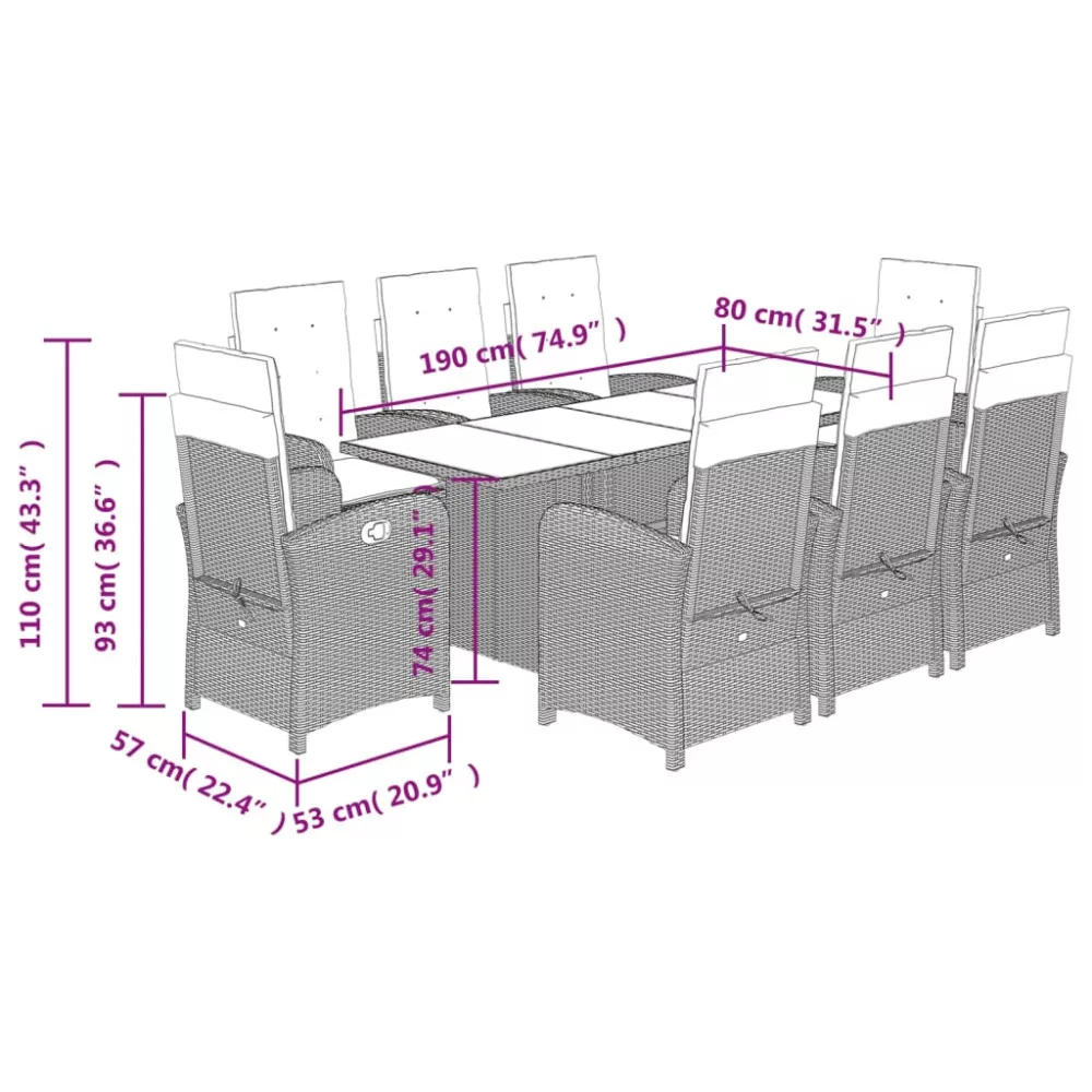 - Anyaga: polietilén rattan, porszórt acélváz, edzett üveg