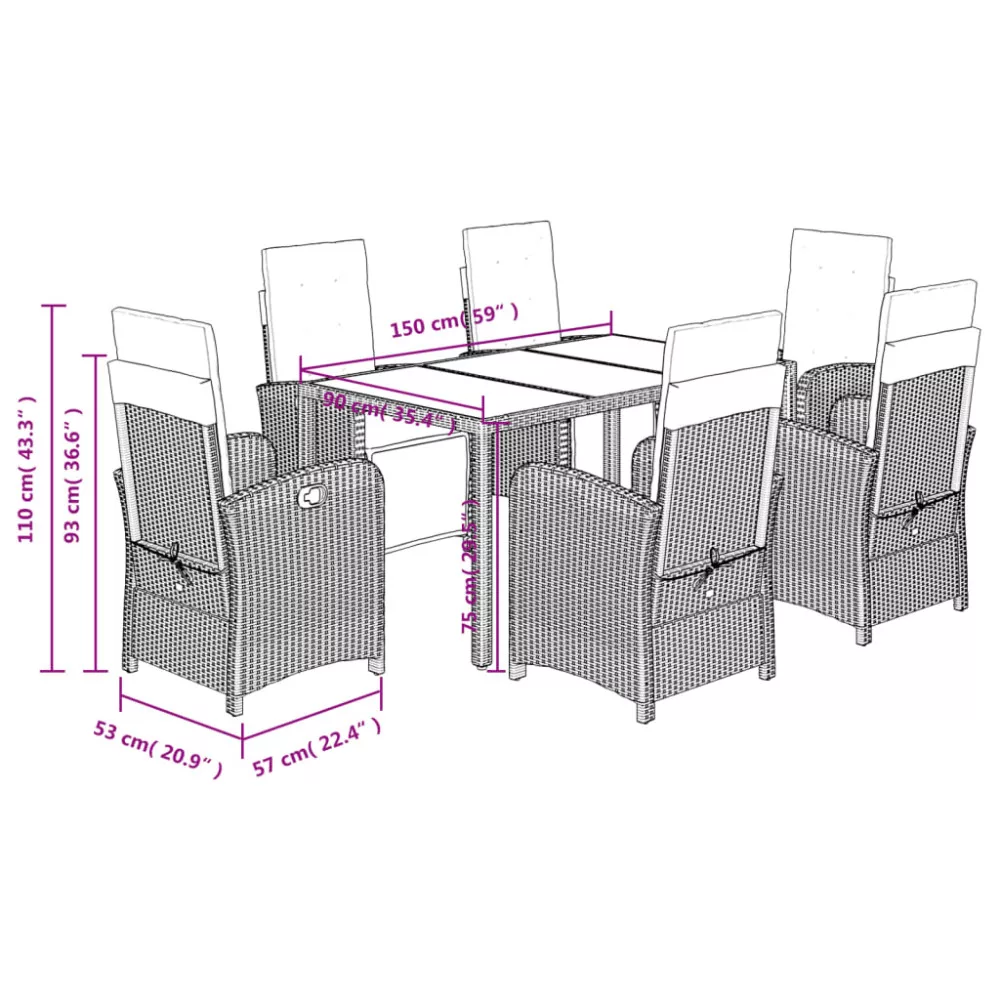 - Anyaga: polietilén rattan, porszórt acélváz, edzett üveg