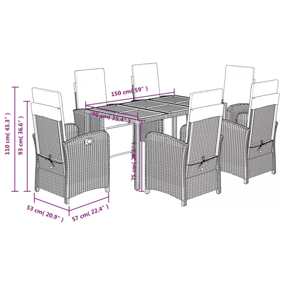 - Anyaga: polietilén rattan, porszórt acél, tömör akácfa