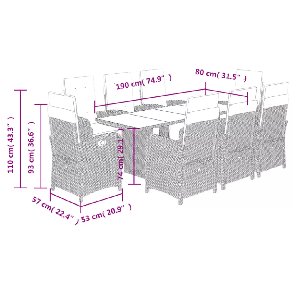 - Anyaga: polietilén rattan, porszórt acélváz, edzett üveg