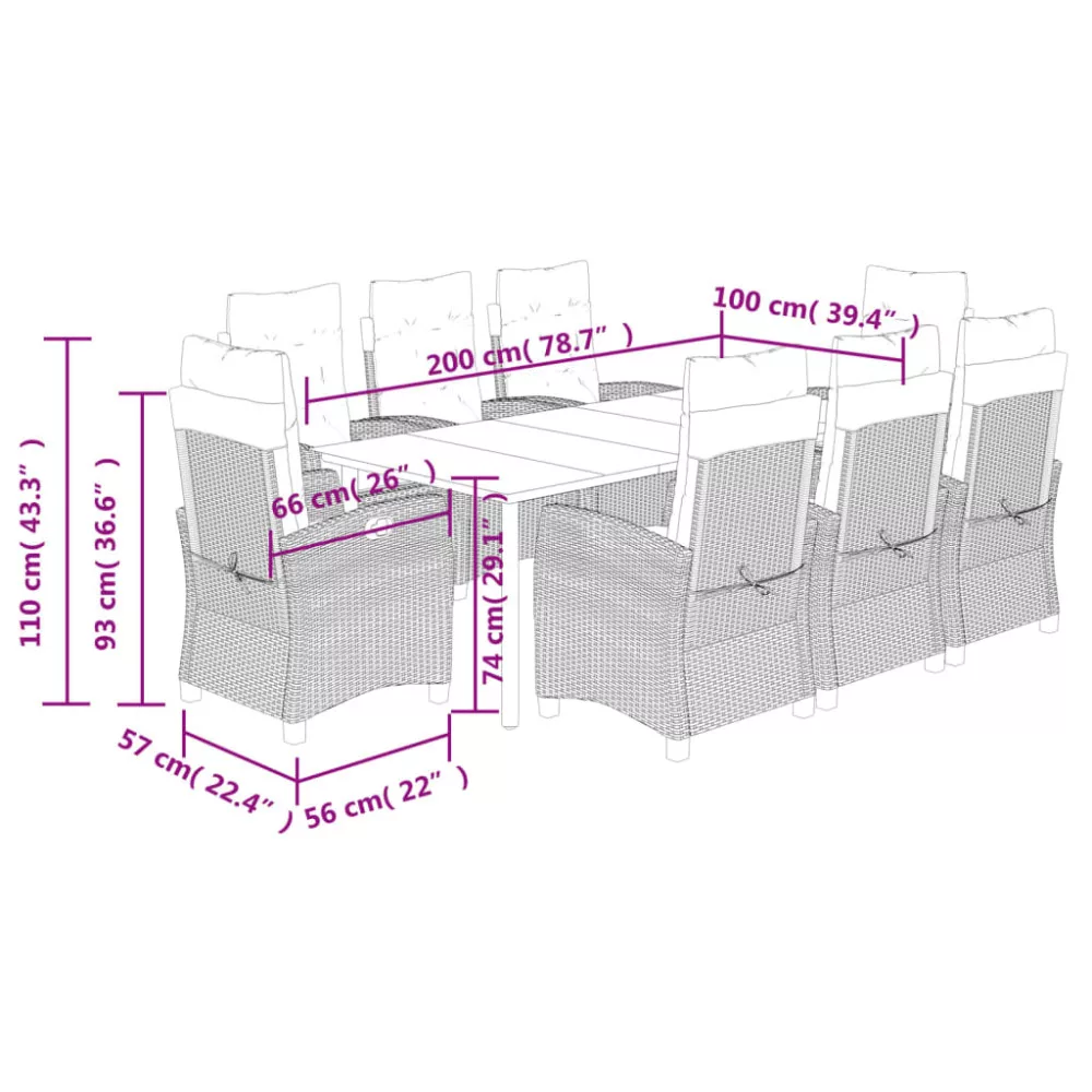 - Mérete: 200 x 100 x 74 cm (Ho x Szé x Ma)