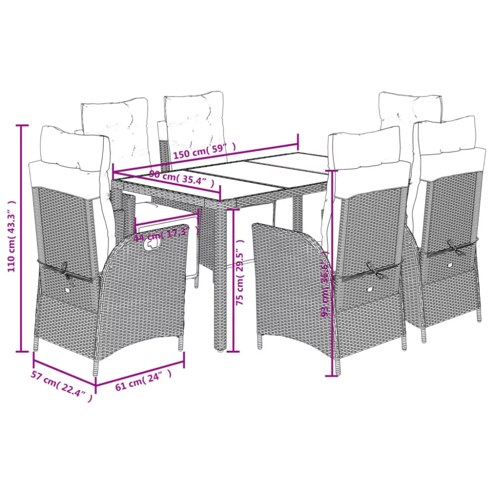 - Anyaga: polietilén rattan, porszórt acélváz, edzett üveg
