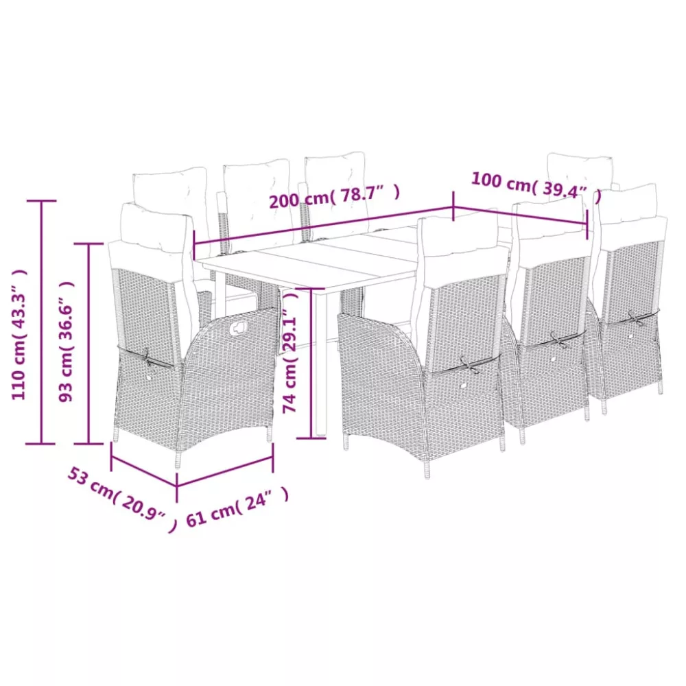 - Mérete: 200 x 100 x 74 cm (Ho x Szé x Ma)